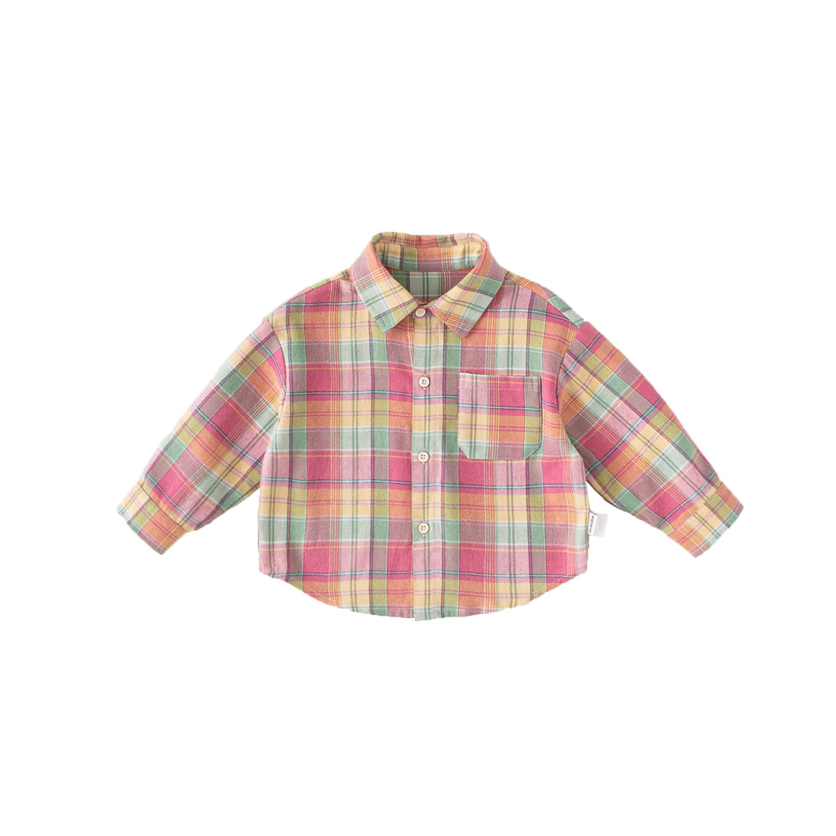 INSbobo男童衬衫春季2026春装新款小童格子上衣女童外套网红时髦