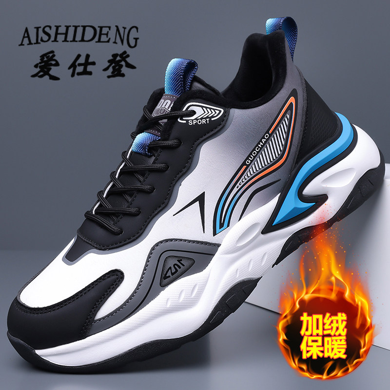 爱仕登秋冬新款男鞋潮加绒运动鞋轻便减震男士四季款休闲跑步鞋