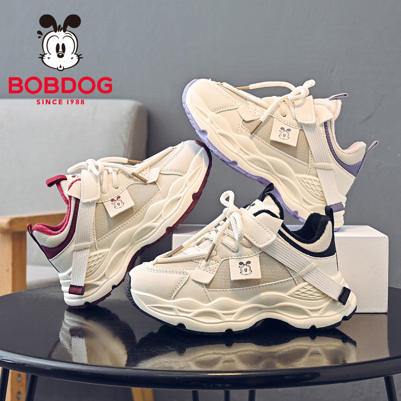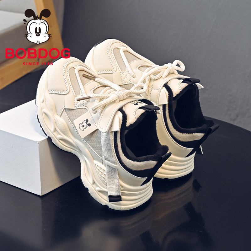 巴布豆童鞋男童鞋子2025新款秋冬季加绒加厚保暖老爹鞋女童运动鞋