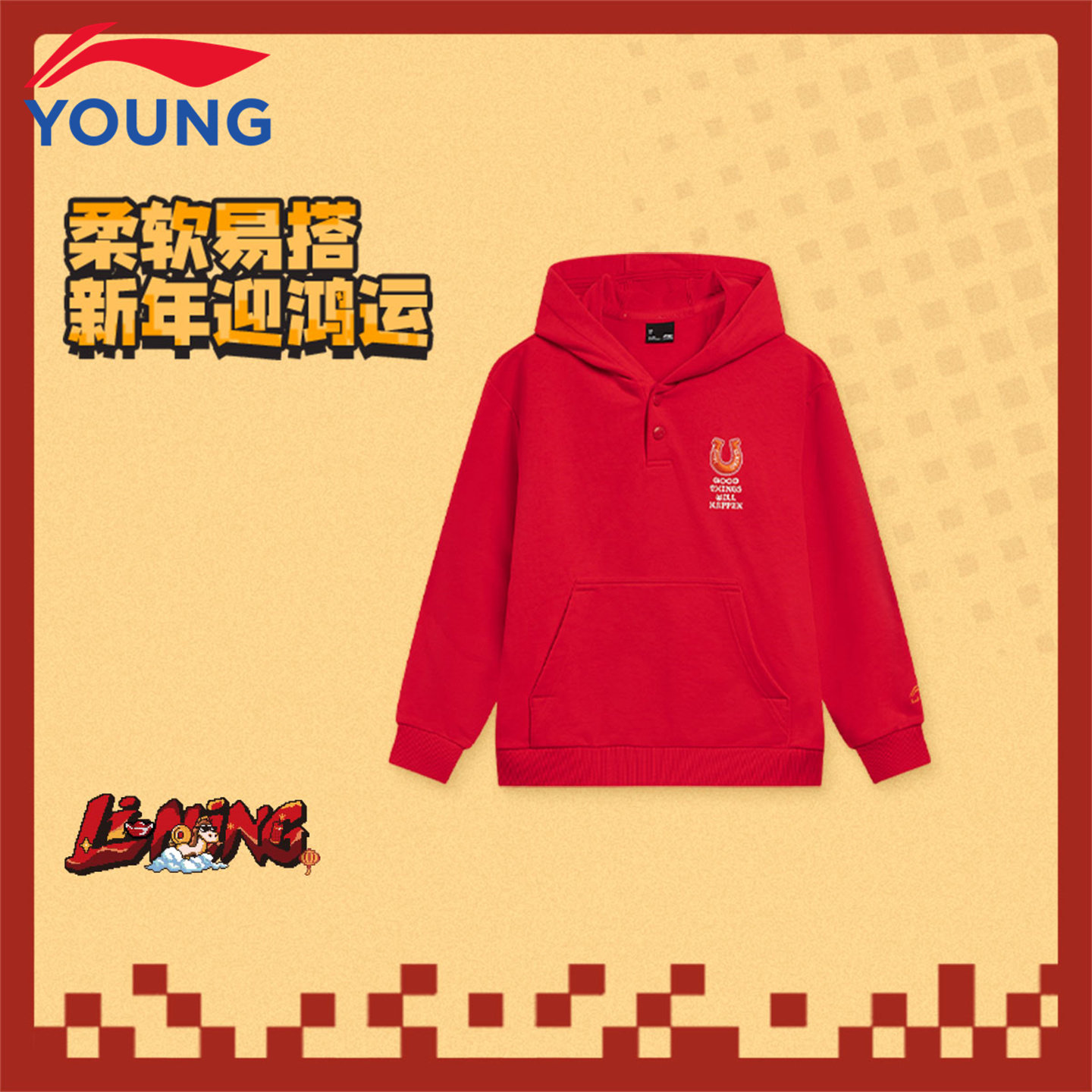 李宁童装儿童拉链连帽卫衣26新年款男童女童宽松休闲帽衫开衫外套