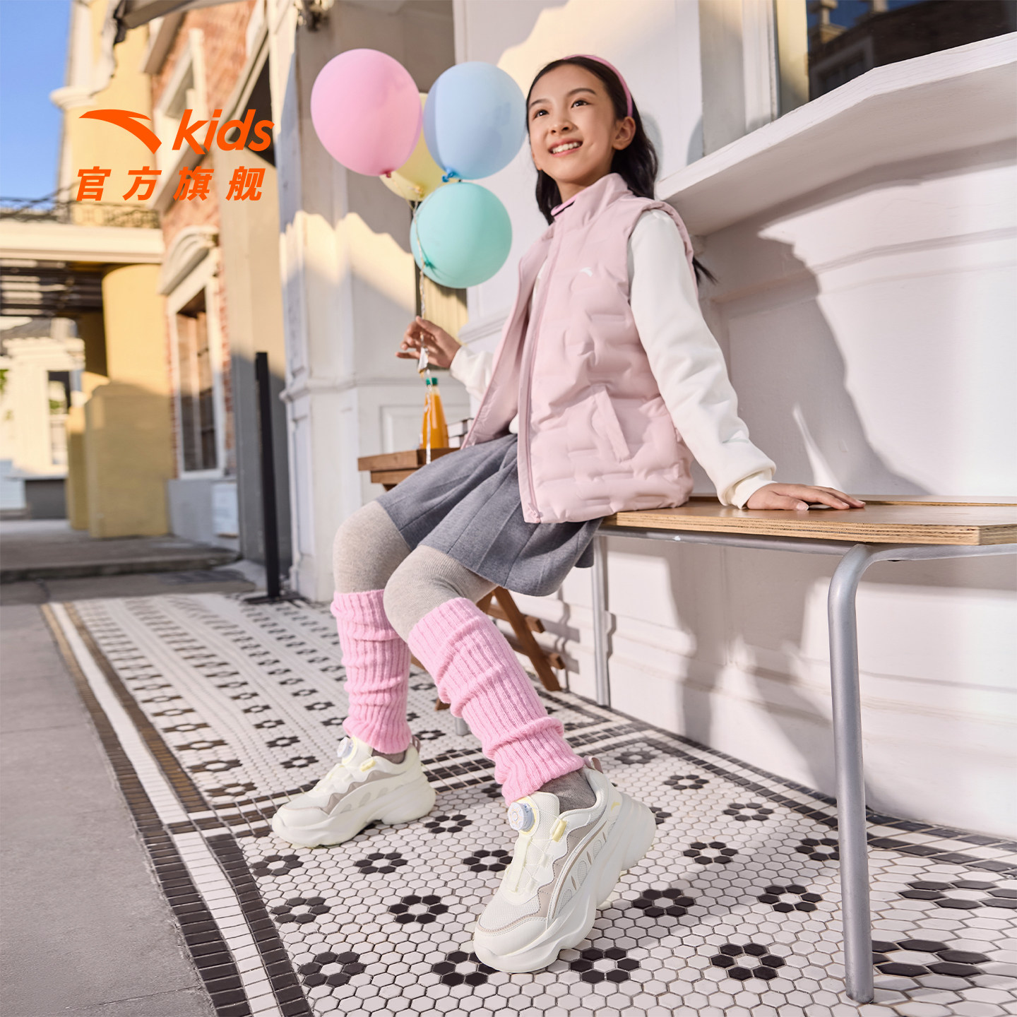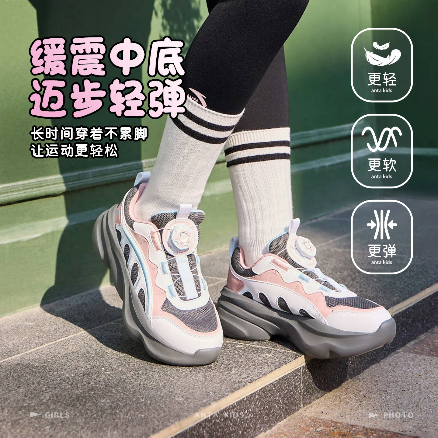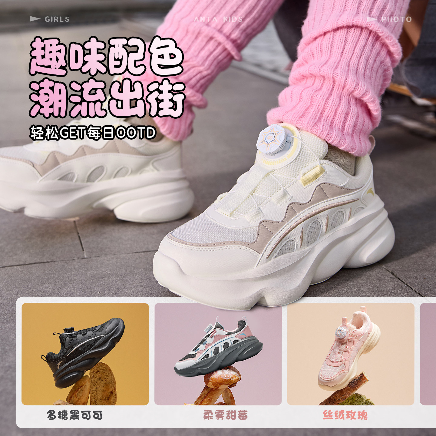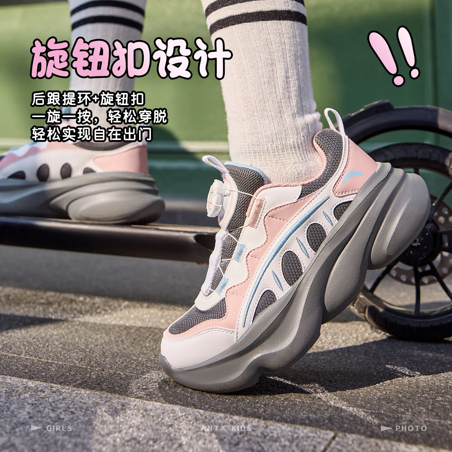 安踏女童运动鞋2026年春季新款儿童老爹鞋厚底增高鞋欧包休闲鞋子
