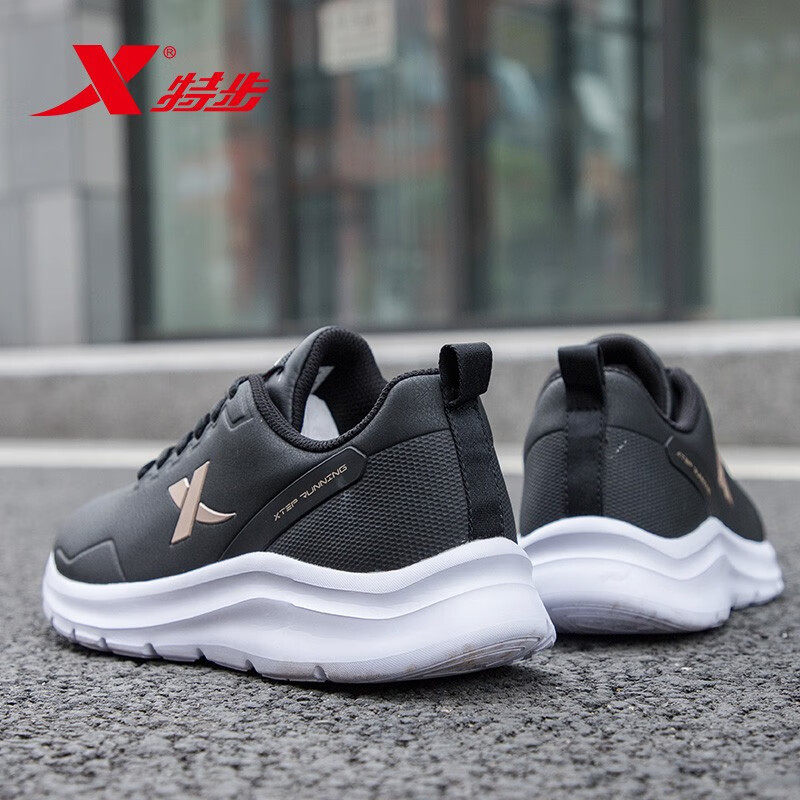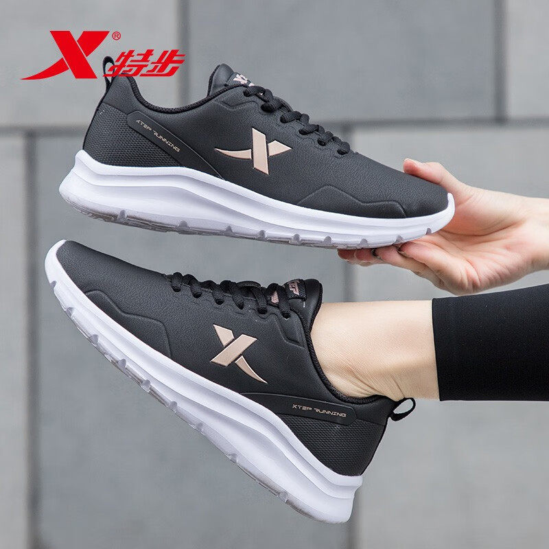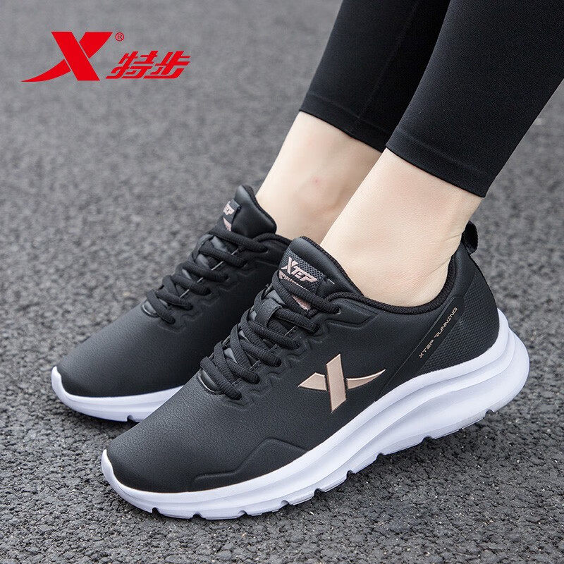 特步女鞋跑步鞋减震轻便正品2026新款皮面防水夏季黑色运动鞋女款