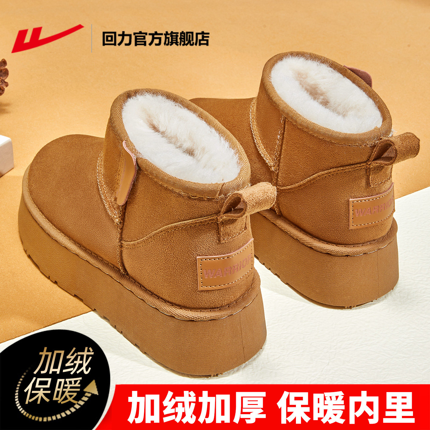 回力官方旗舰店厚底雪地靴女款冬季加绒女鞋面包鞋子女士保暖棉鞋