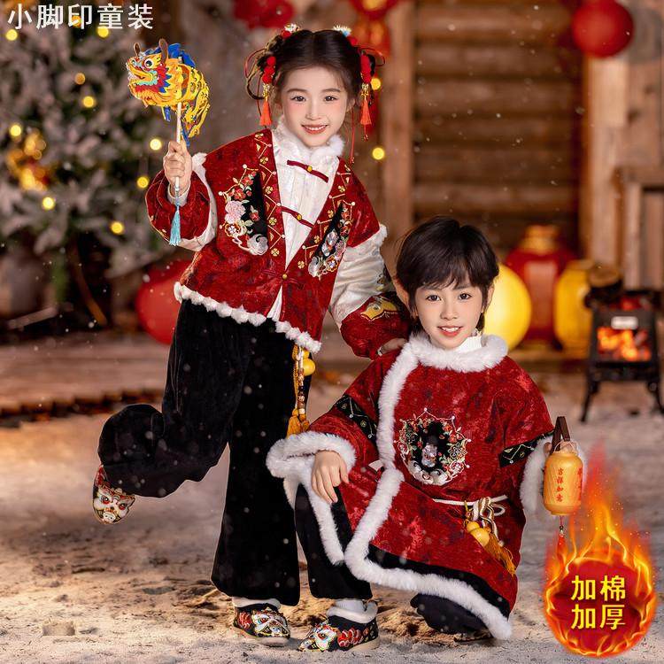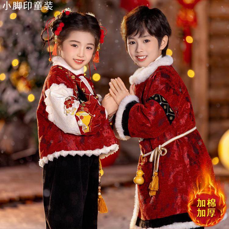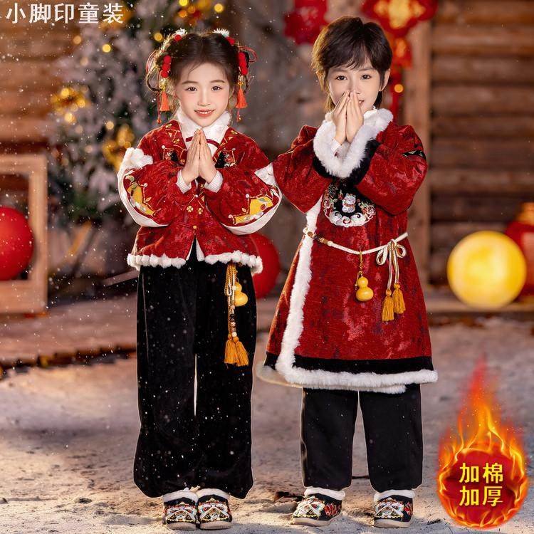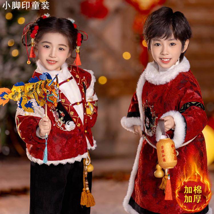 拜年服男童汉服马年新年冬季中国风儿童唐装宝宝过年衣服喜庆款