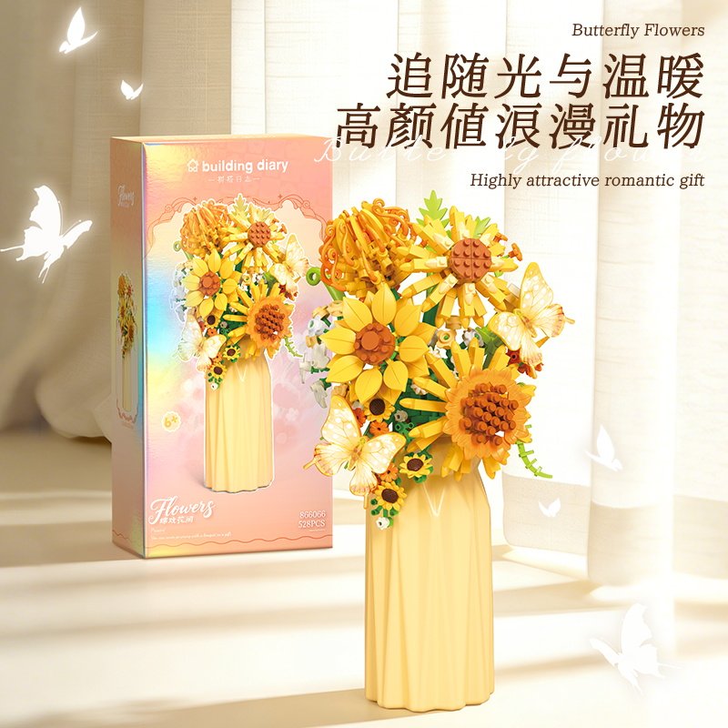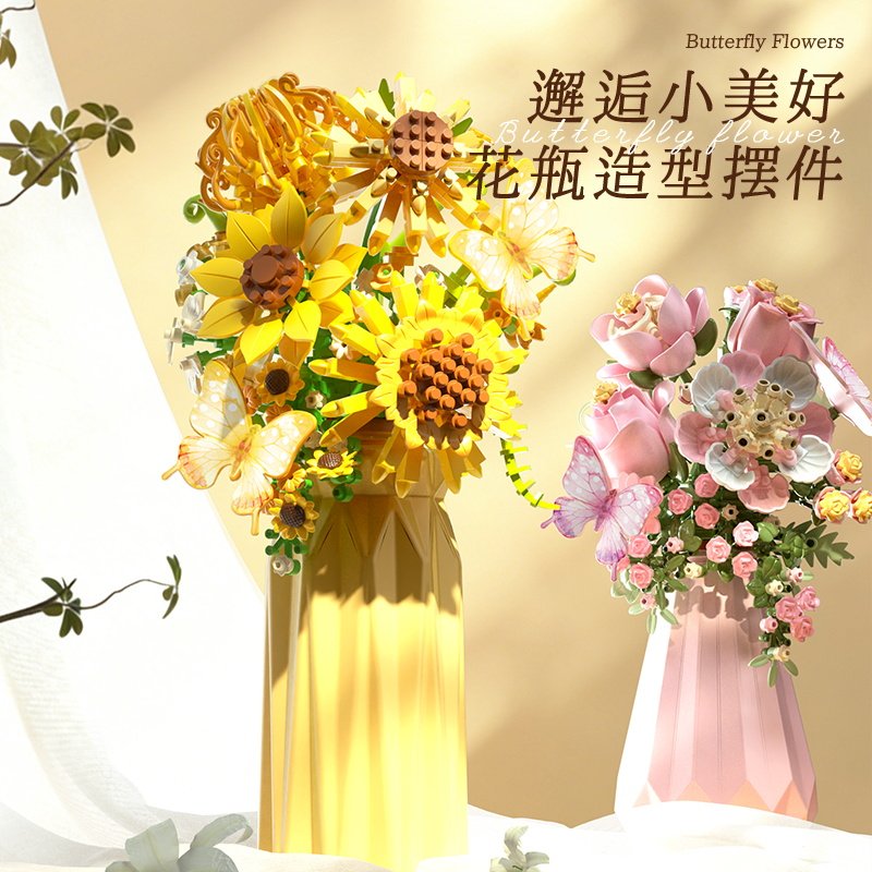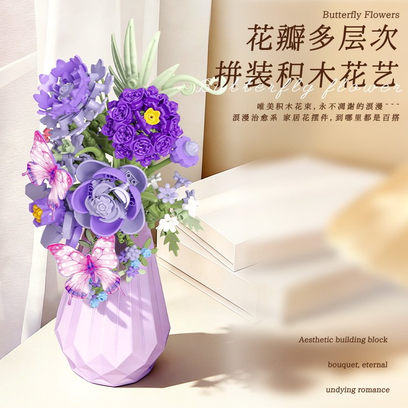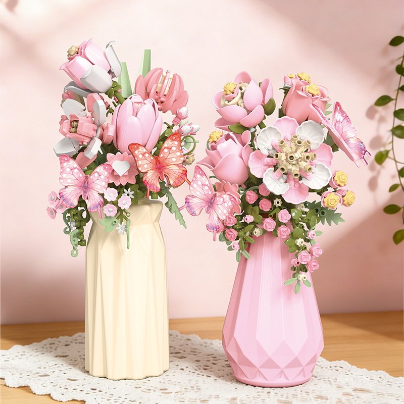 积木花diy拼装玩具高颜值永生花束花瓶装饰摆件送女生送闺蜜礼物