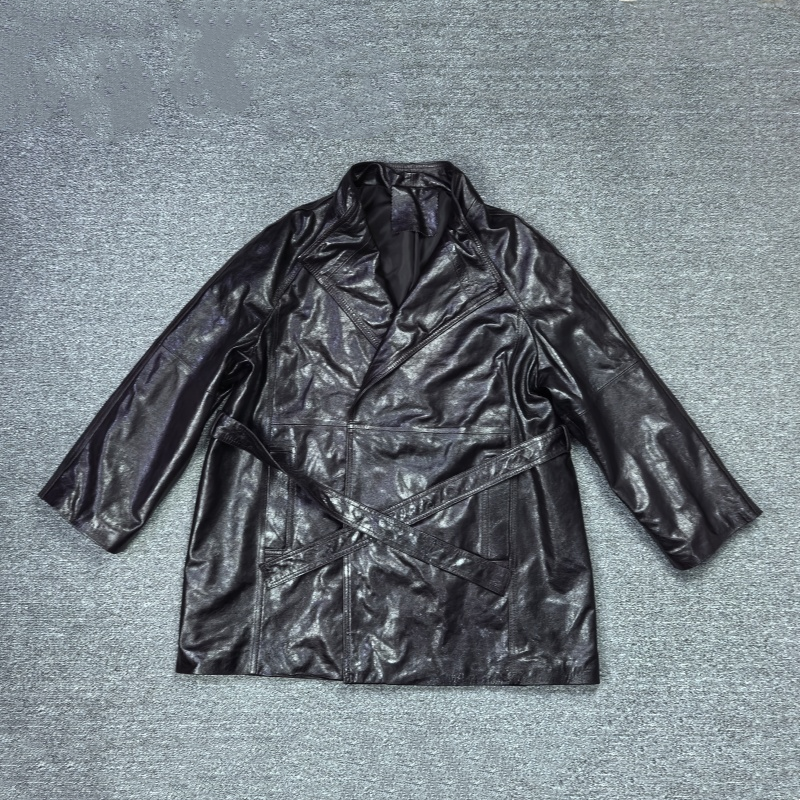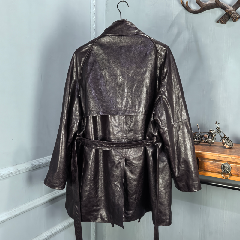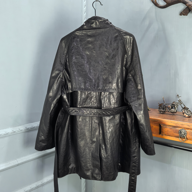 欧货2026秋季新款真皮皮衣女绵羊皮系带收腰显瘦复古中长款风衣