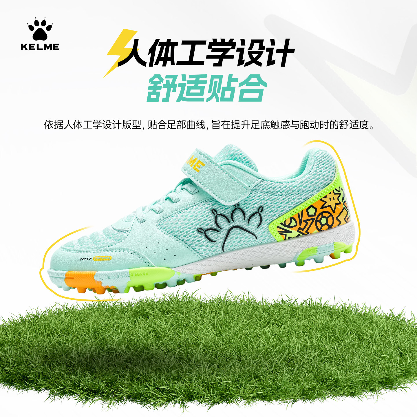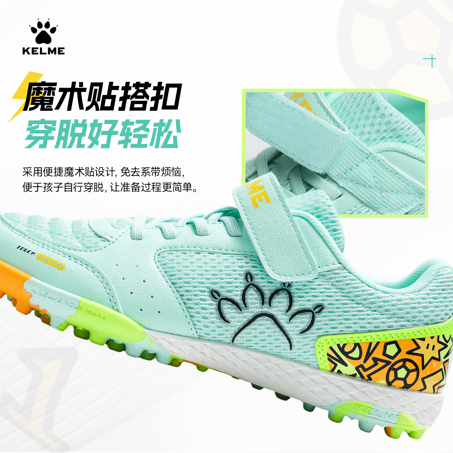 KELME卡尔美儿童足球鞋小学生魔术贴TF男女童日常训练人造草碎钉