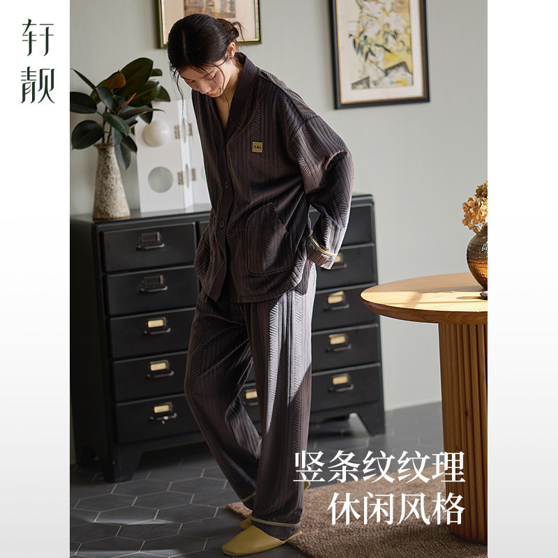 轩靓2026新款睡衣女款冬季加绒海岛绒高级感珊瑚绒薄绒家居服套装