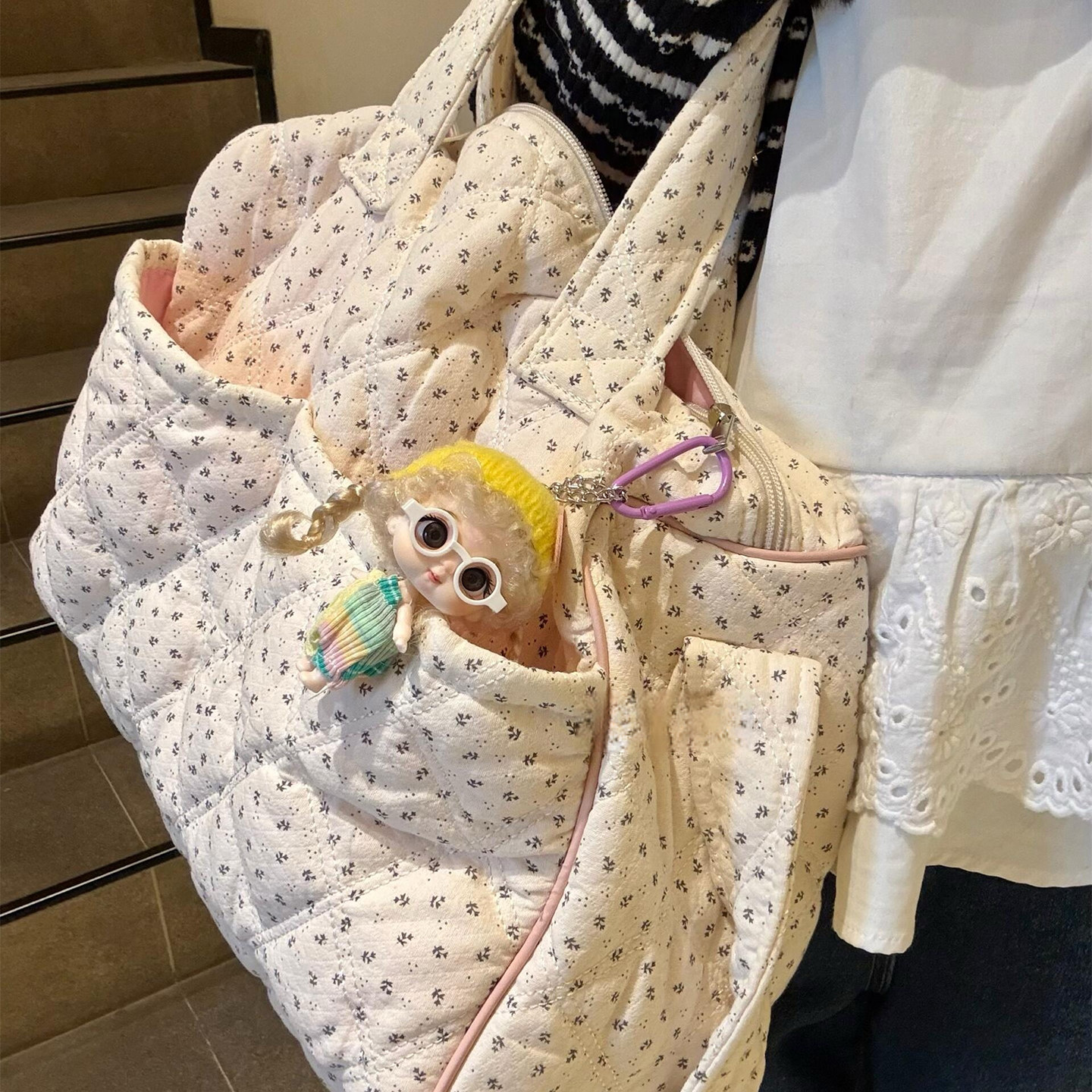 日韩风小碎花手提旅行包大容量女短途出差旅游行李袋多口袋斜挎包