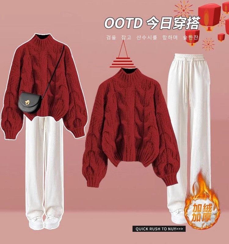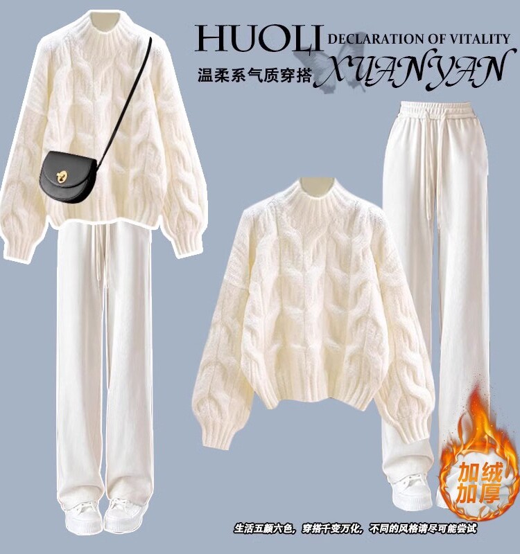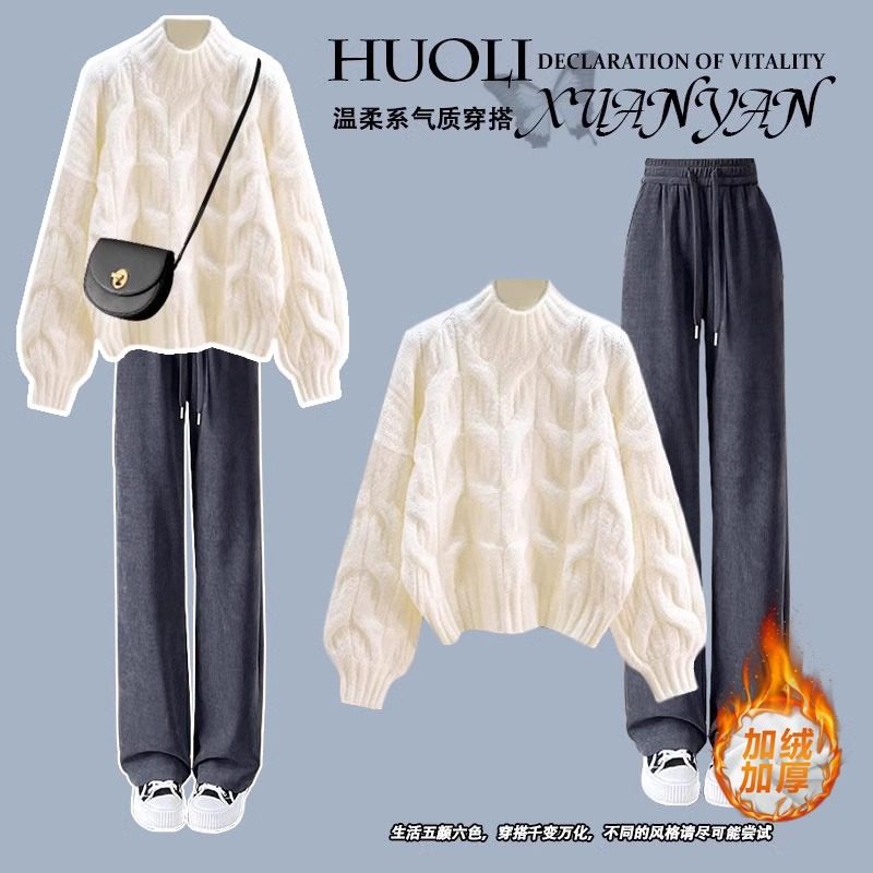初中生秋冬季套装女孩穿搭一整套冬装女大童针织毛衣阔腿裤两件套