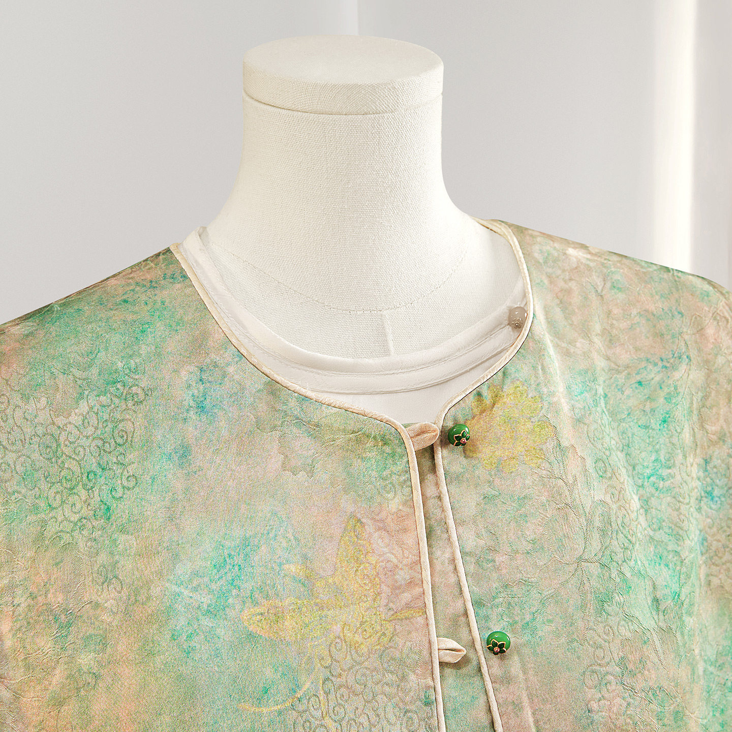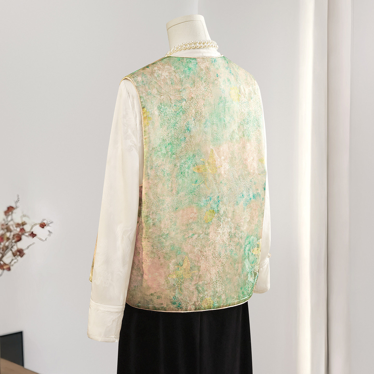 她池圆领马甲2026春装新款女装国风气质宽松款单排扣叠穿短款马夹