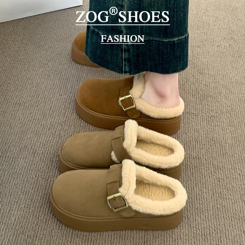 品牌清仓真皮毛毛鞋女2025冬季新款勃肯半拖厚底毛拖鞋加绒雪地靴