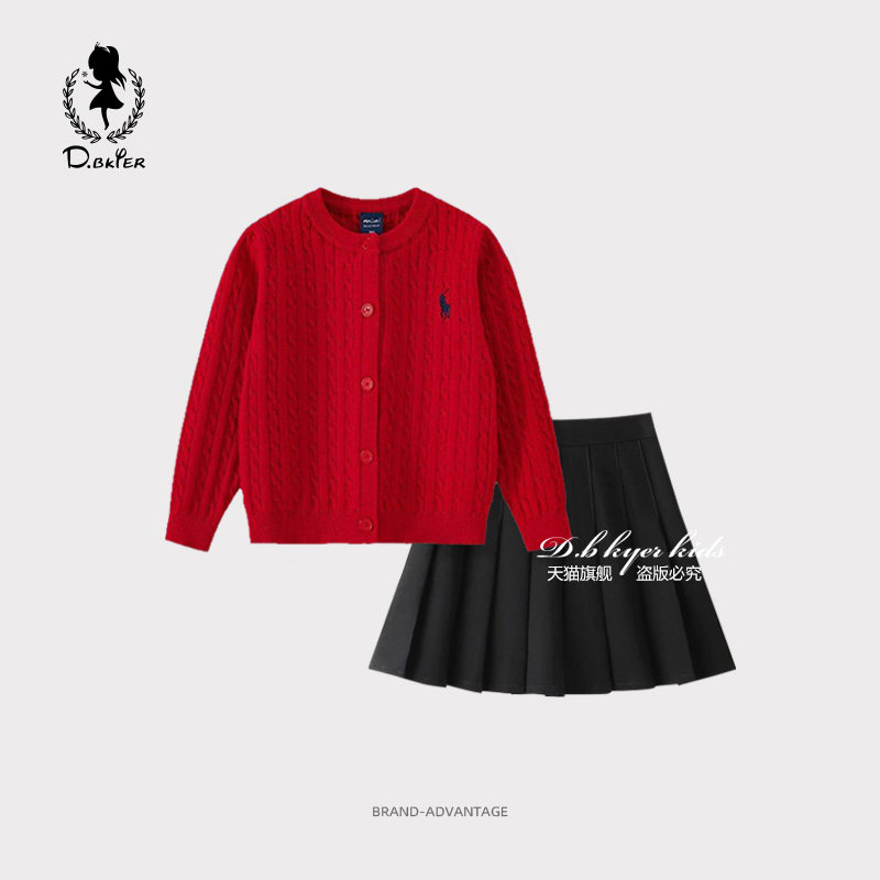 sesameclub女童春季套装2026新款儿童jk裙子大童女孩毛衣开衫外套