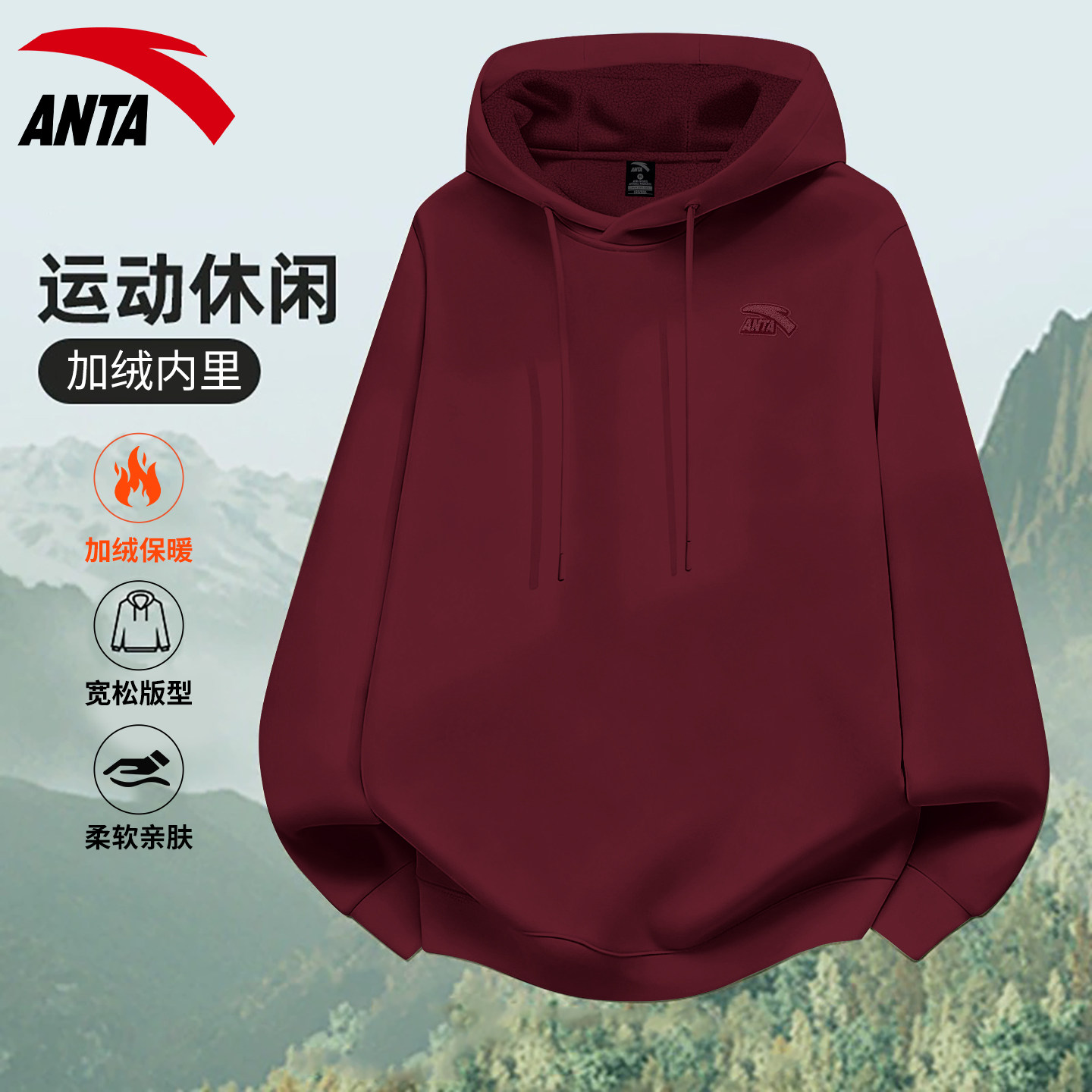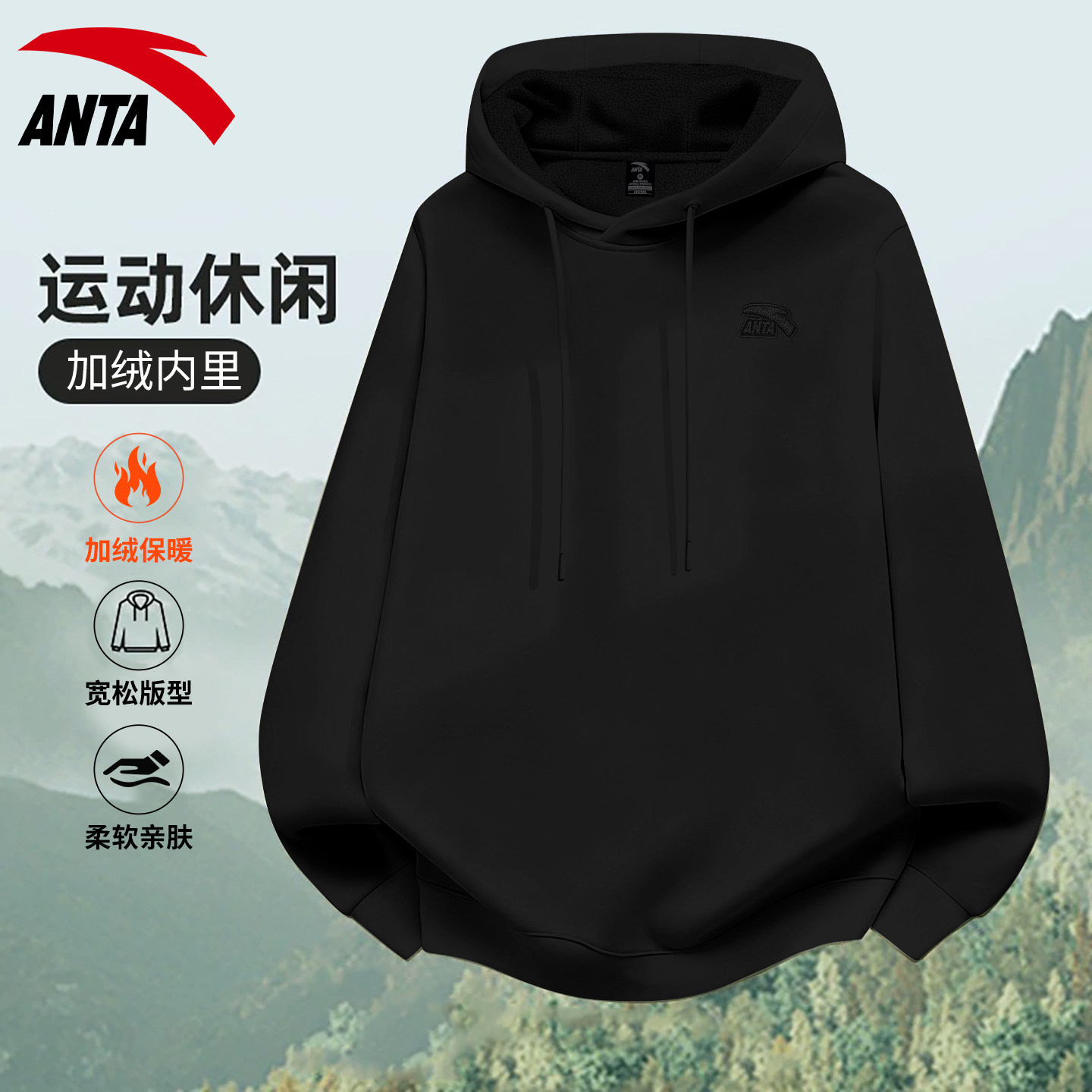 安踏重磅加厚连帽卫衣男款2025新款秋冬季男士宽松加绒青少年外套
