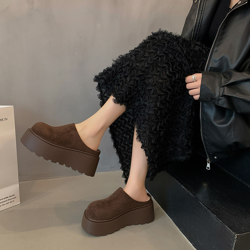 311线报网描述:8CM内增高小个子厚底勃肯包头半拖鞋女加绒
