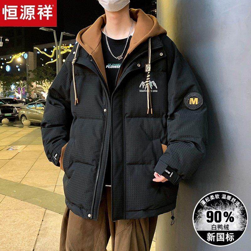 恒源祥初中生羽绒服男冬季青少年2024款防水潮牌连帽假两件防寒服