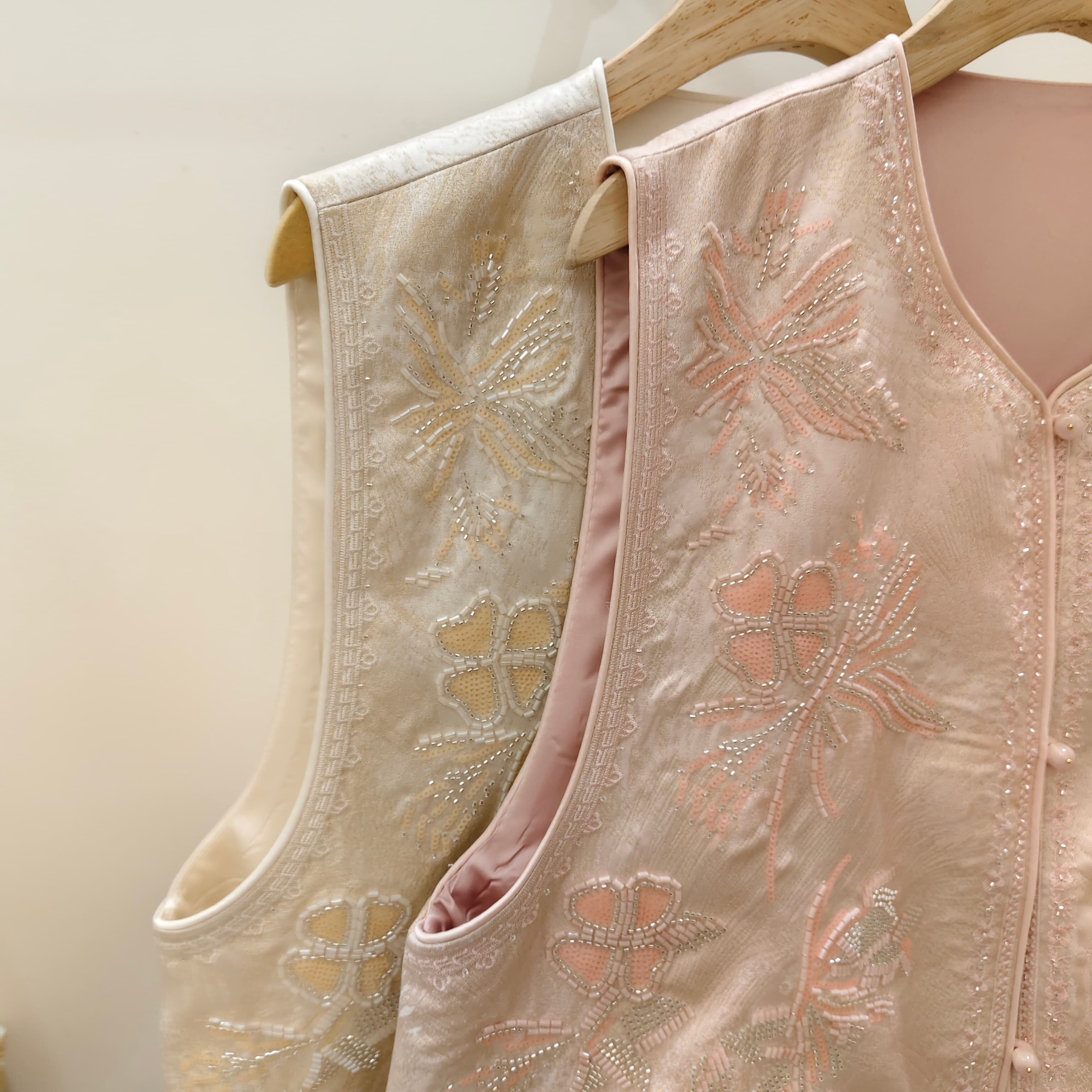 时尚钉珠新中式圆领马甲女早春气质重工刺绣国风人丝上衣2026新款