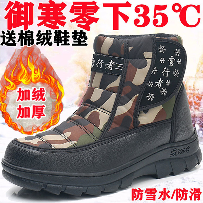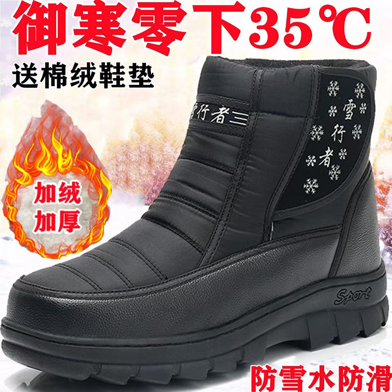 东北雪地靴男士棉鞋保暖冬季加绒加厚高帮防水防滑男鞋子黑色雪靴