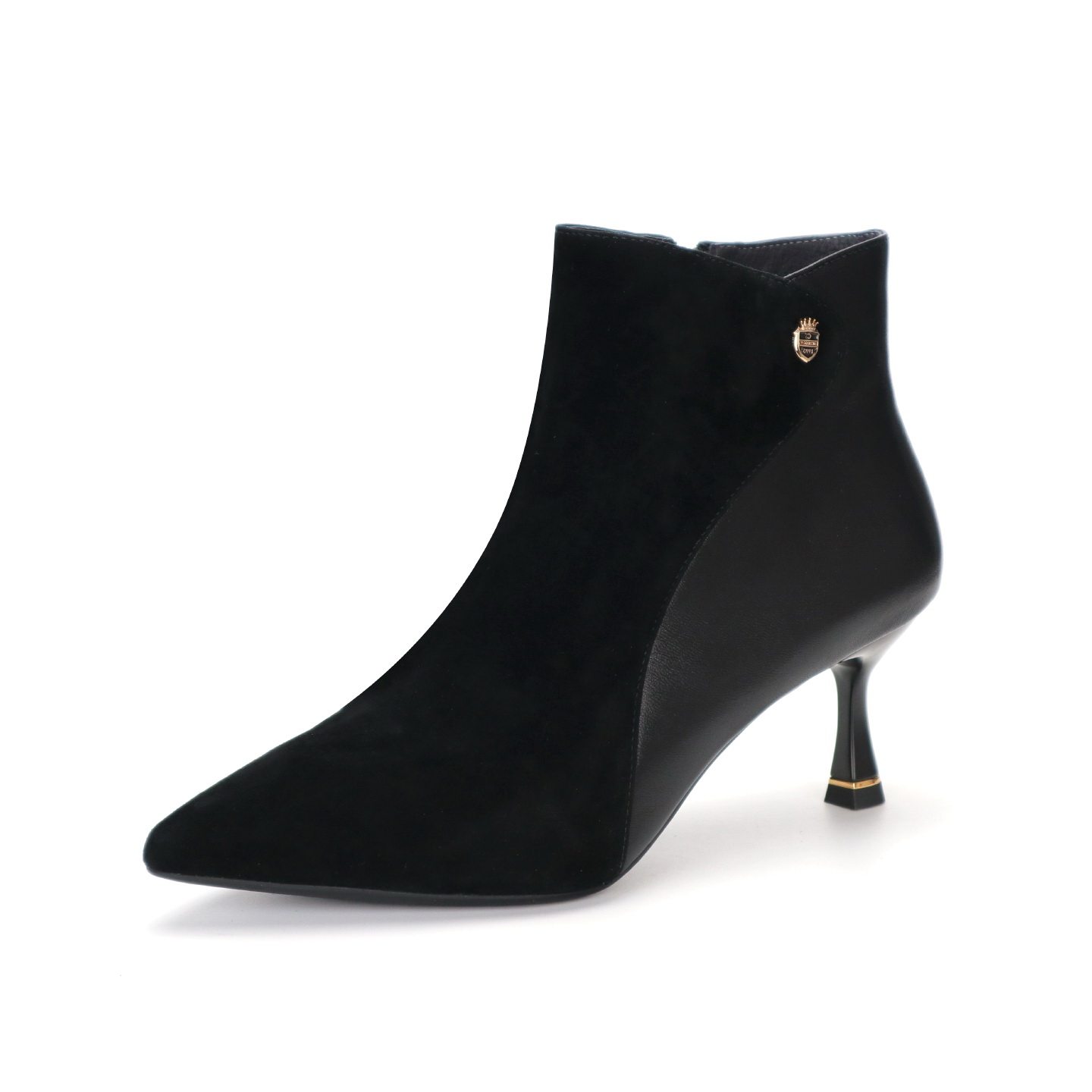 千百度2025细跟高跟鞋时装靴踝靴尖头羊皮短靴子A25571635A01A15