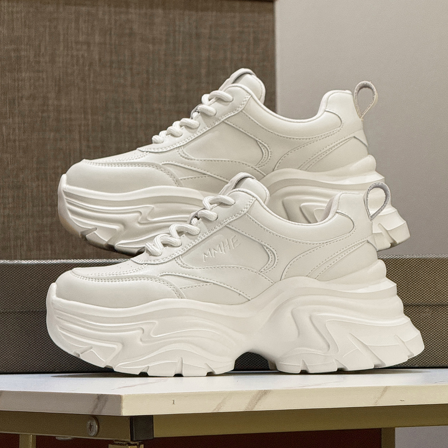 白色厚底老爹鞋2025新款秋季女鞋小个子增高7厘米休闲运动小白鞋