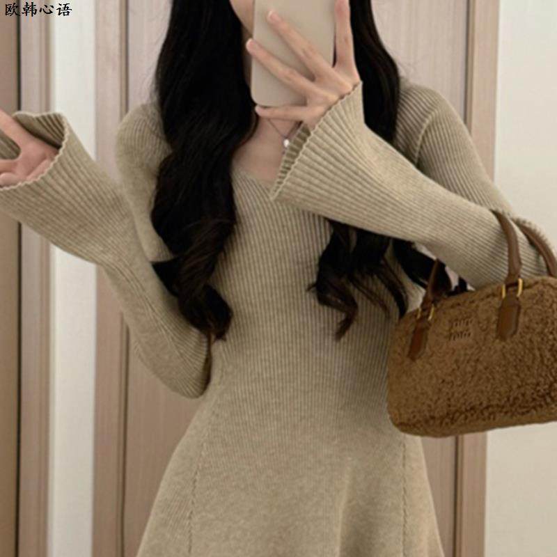 法式高级感气质长袖针织连衣裙子女秋冬季2025新款小个子收腰短裙