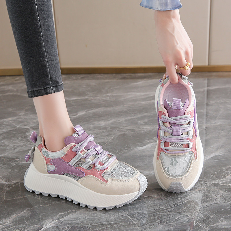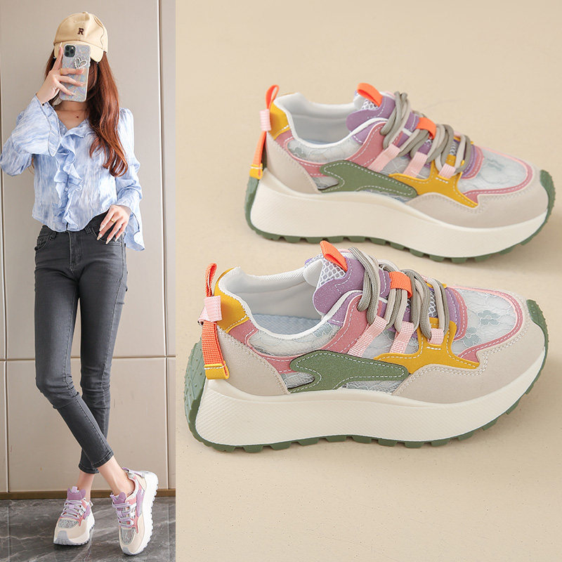 311线报网描述:阿甘运动鞋女2025夏新款透气网纱休闲鞋拼色