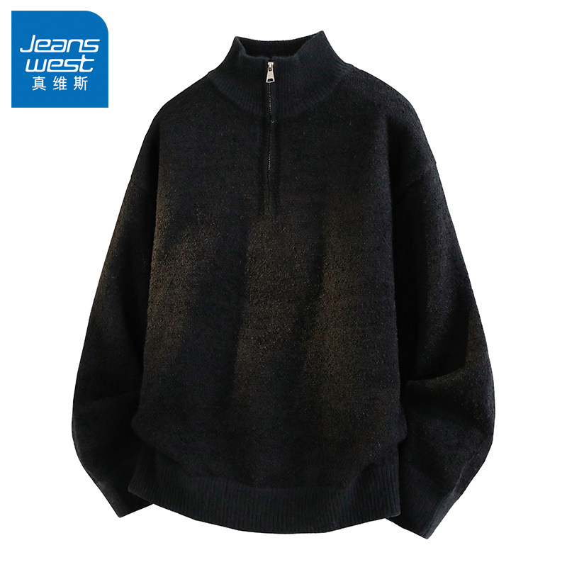 N5真维斯毛衣男2025新款秋冬季宽松情侣高领半拉链保暖男款针织衫
