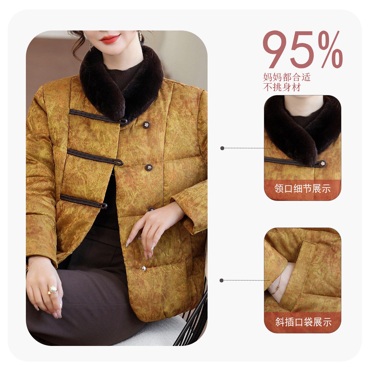 妈妈冬装鹅绒服2026新款洋气中老年人女款兔毛领羽绒秋冬高端外套