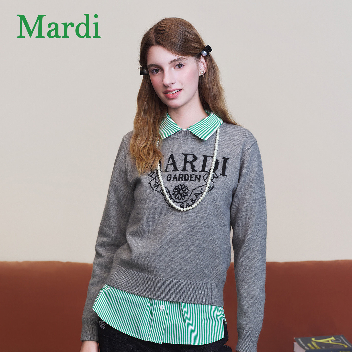 MARDI女款套头针织衫春季新款刺绣字母时尚休闲显瘦百搭长袖上衣