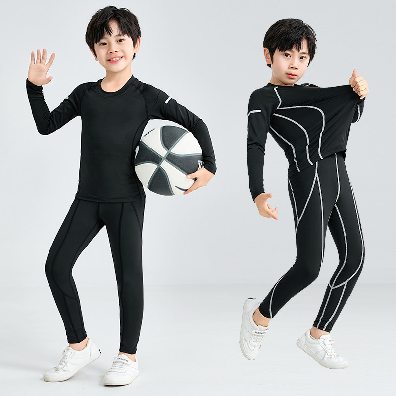儿童运动套装男童篮球足球训练服长袖美式冬季体能男孩紧身衣春秋
