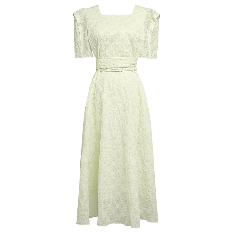 2026早春夏季新款OL复古方领别致羊腿袖露背系结甜美淑女风连衣裙