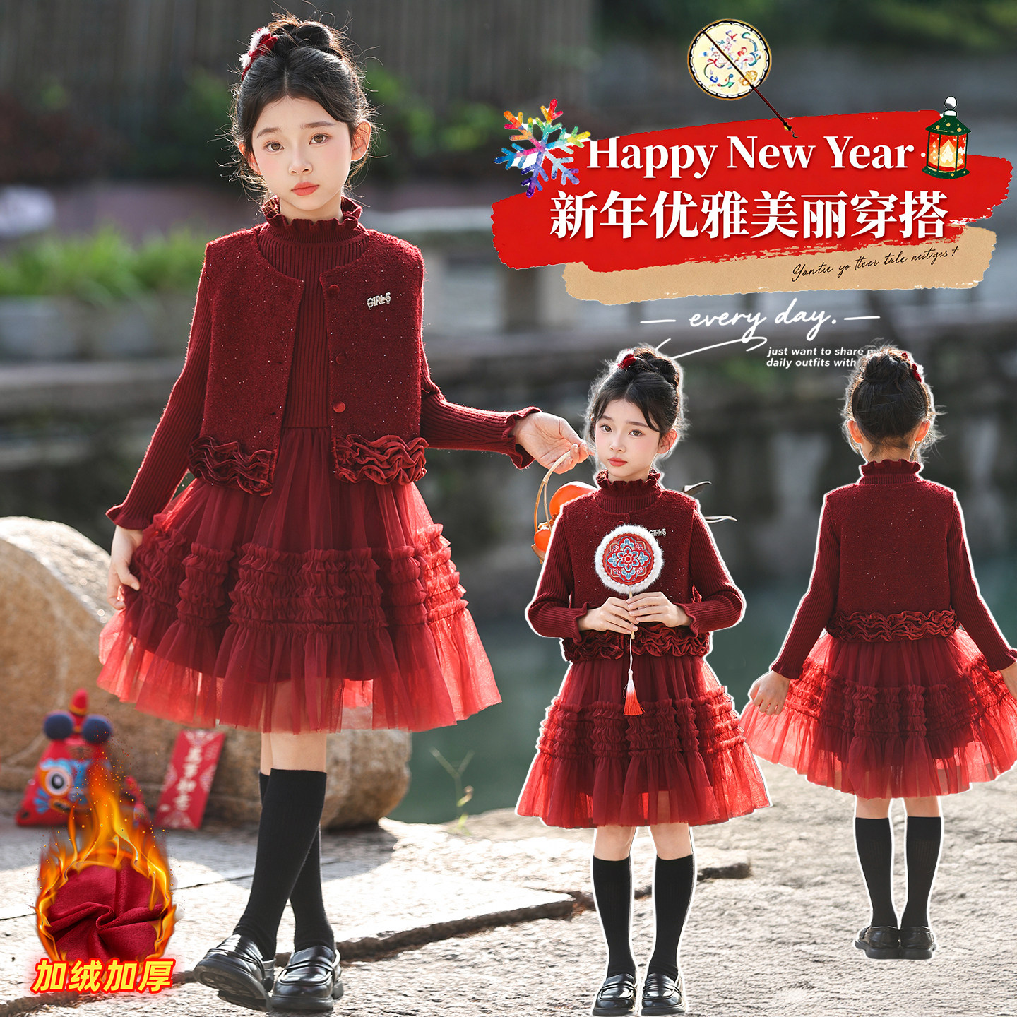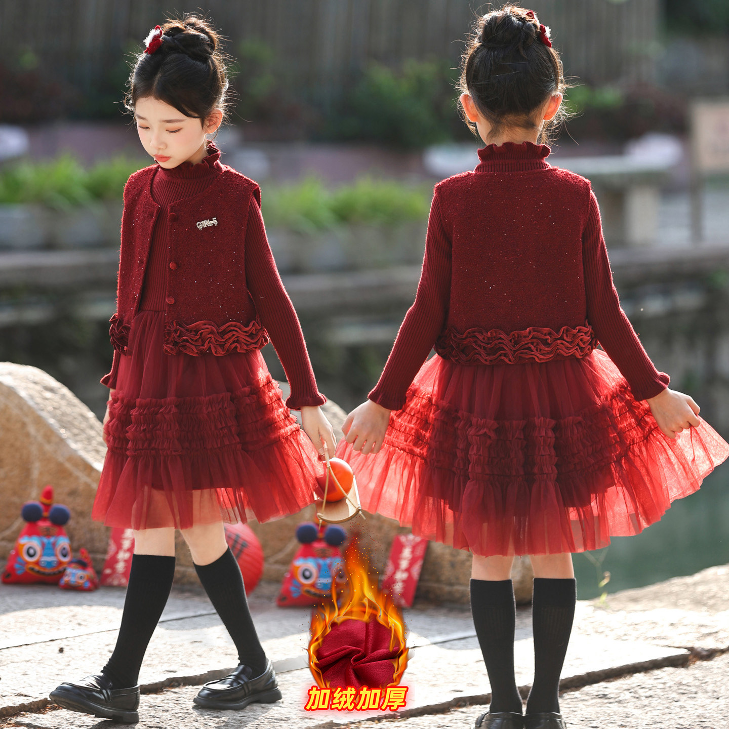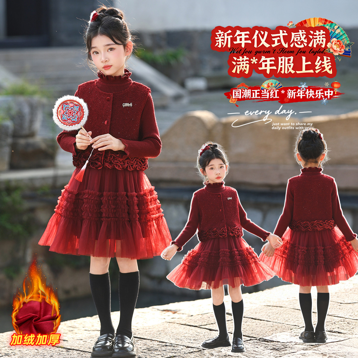 女童年服连衣裙2026年新款秋冬洋气时髦中大童韩版小香风纱裙套装