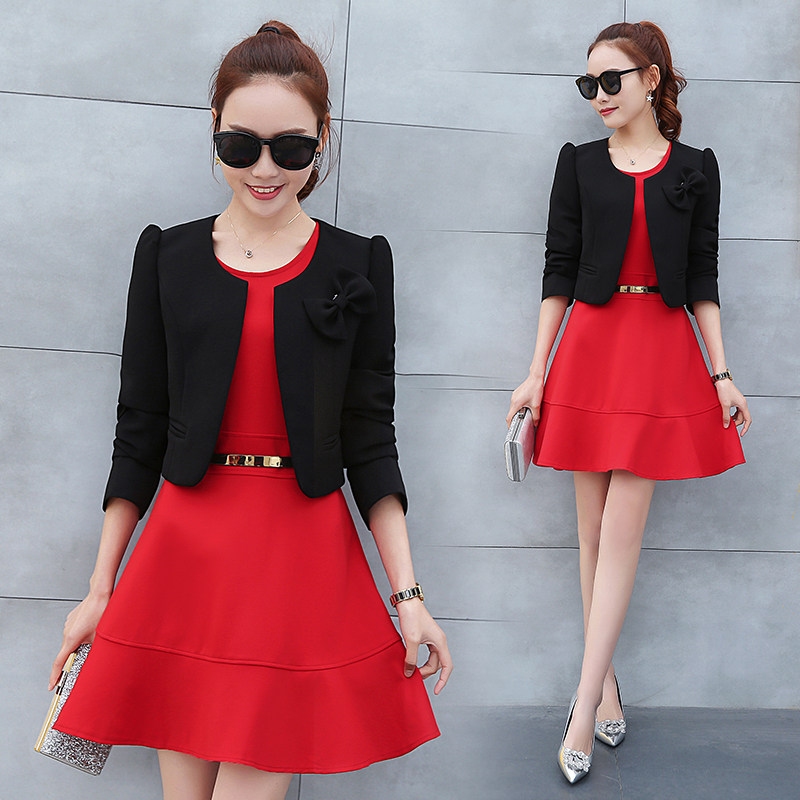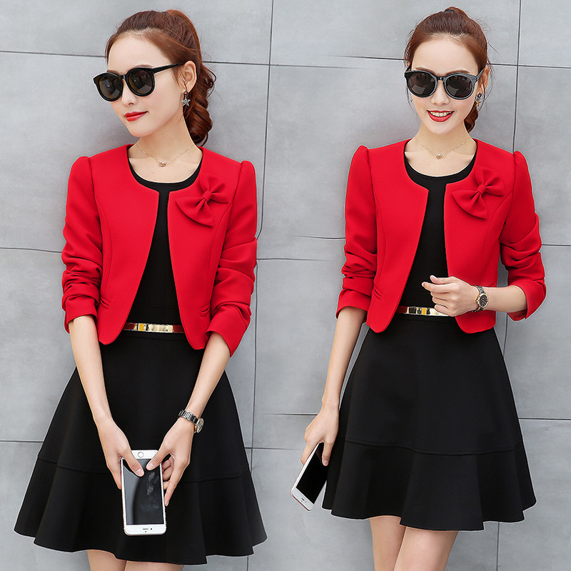小香风连衣裙套装女2025春秋新款中袖裙子加外套披肩小个子两件套