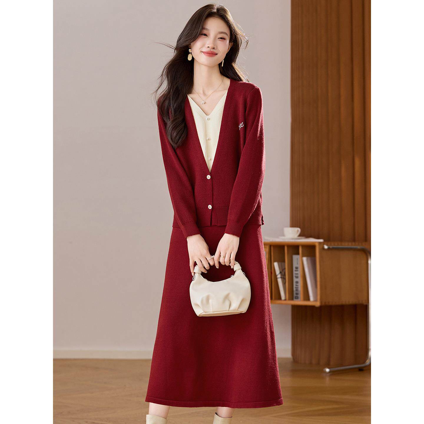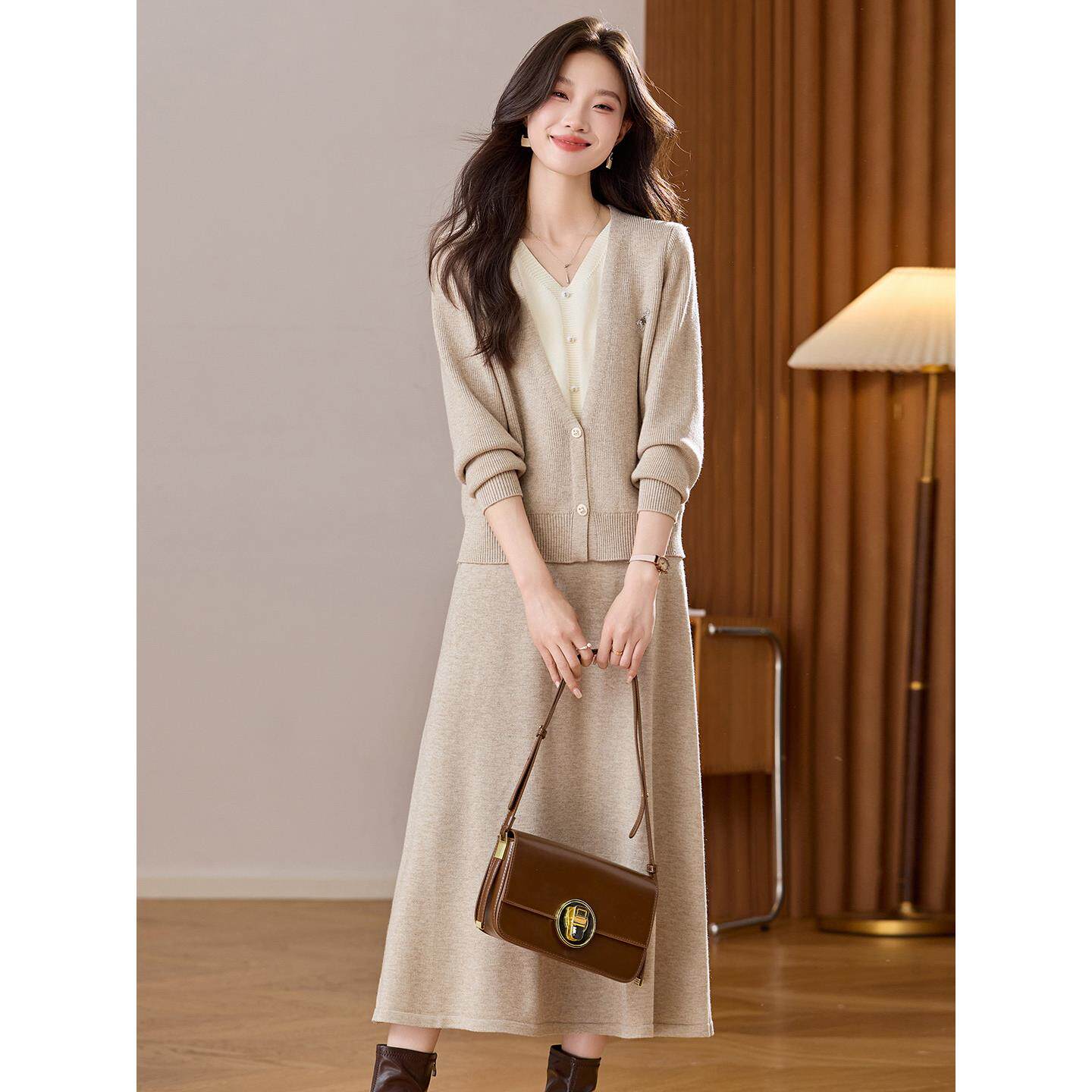 MONLOUVE秋冬连衣裙女新款轻奢高级感两件套毛衣裙中长款洋气针织