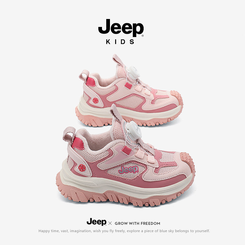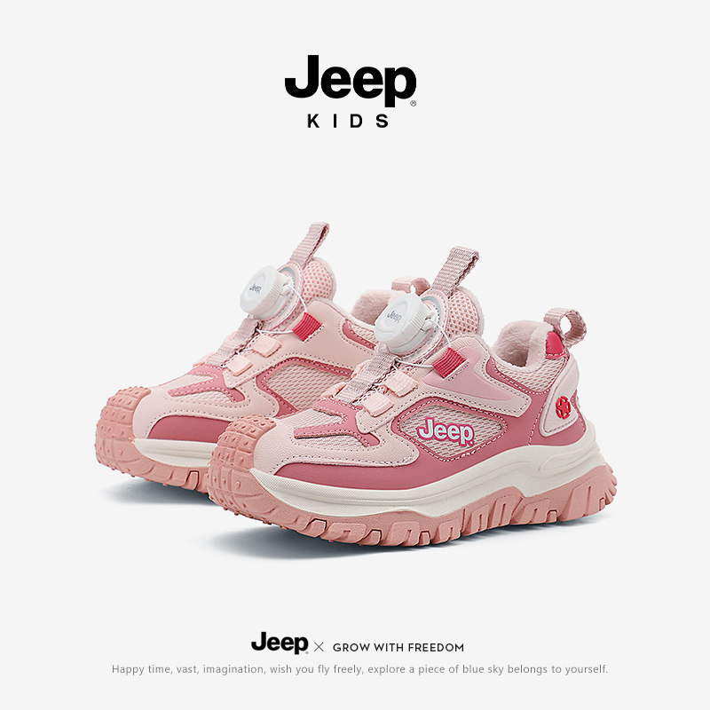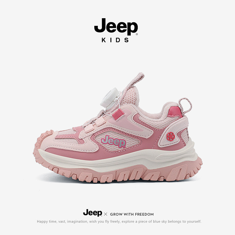 Jeep女童运动鞋冬季2026新款儿童鞋子皮面防水秋冬加绒二棉鞋童鞋