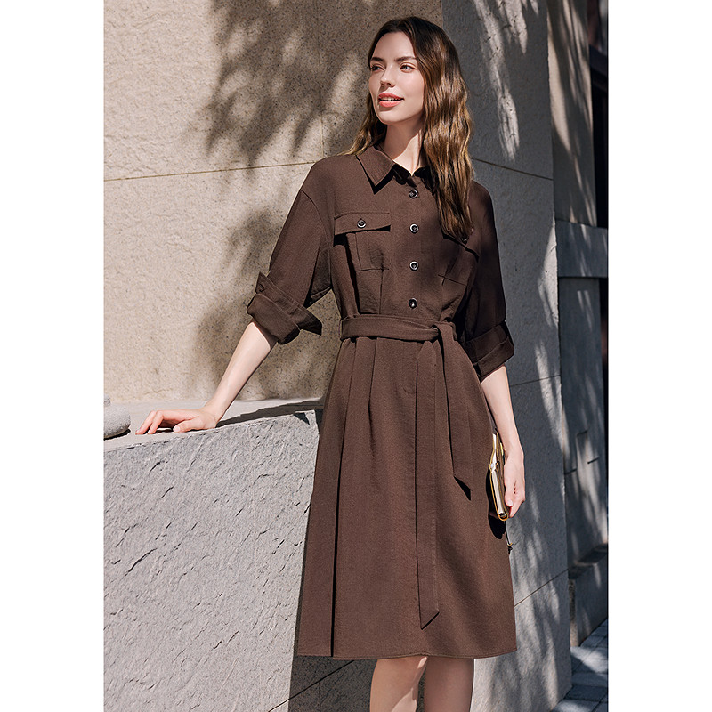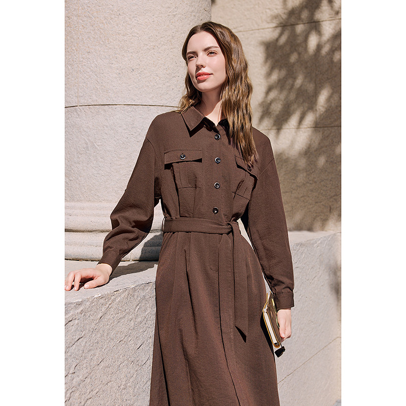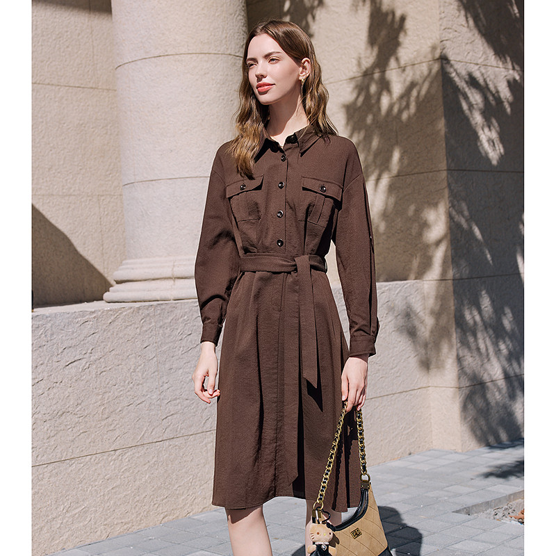 betu百图复古工装风连衣裙2026年春季新款系带收腰裙女士衬衫裙