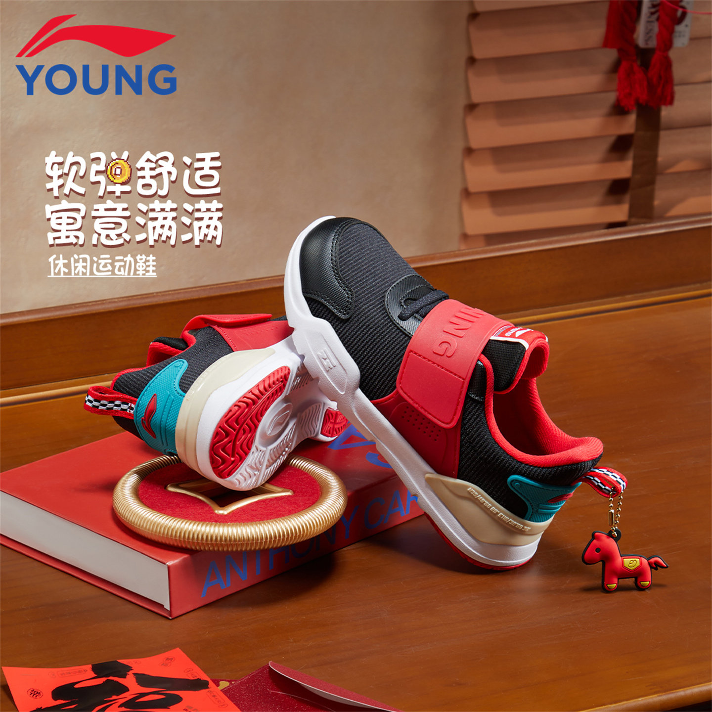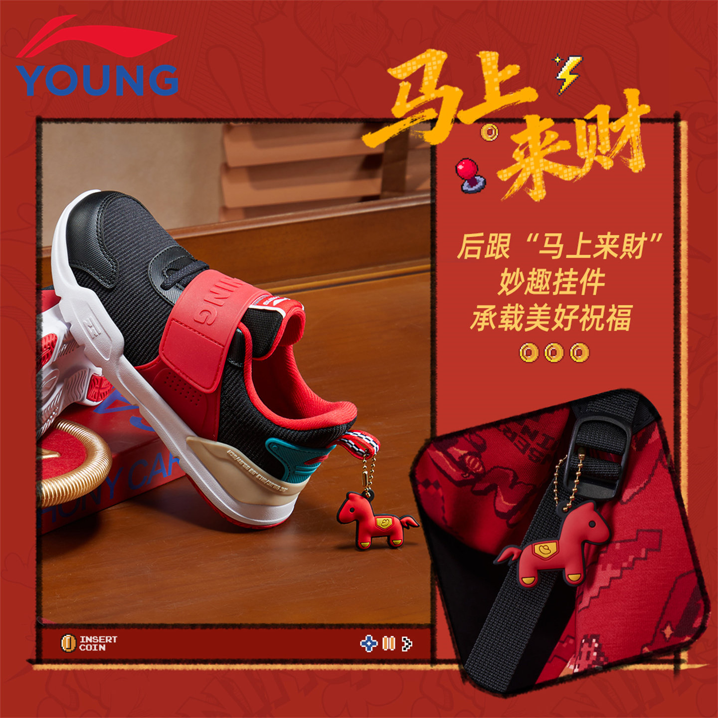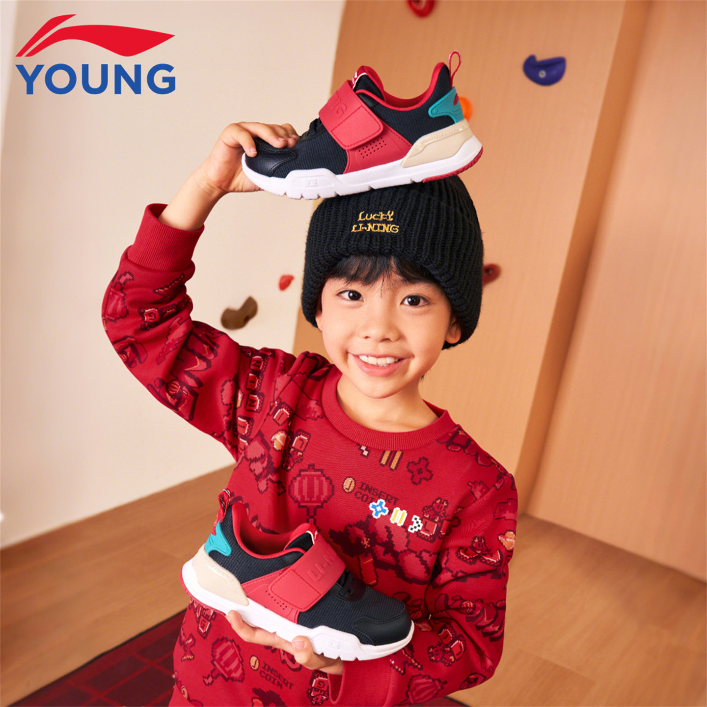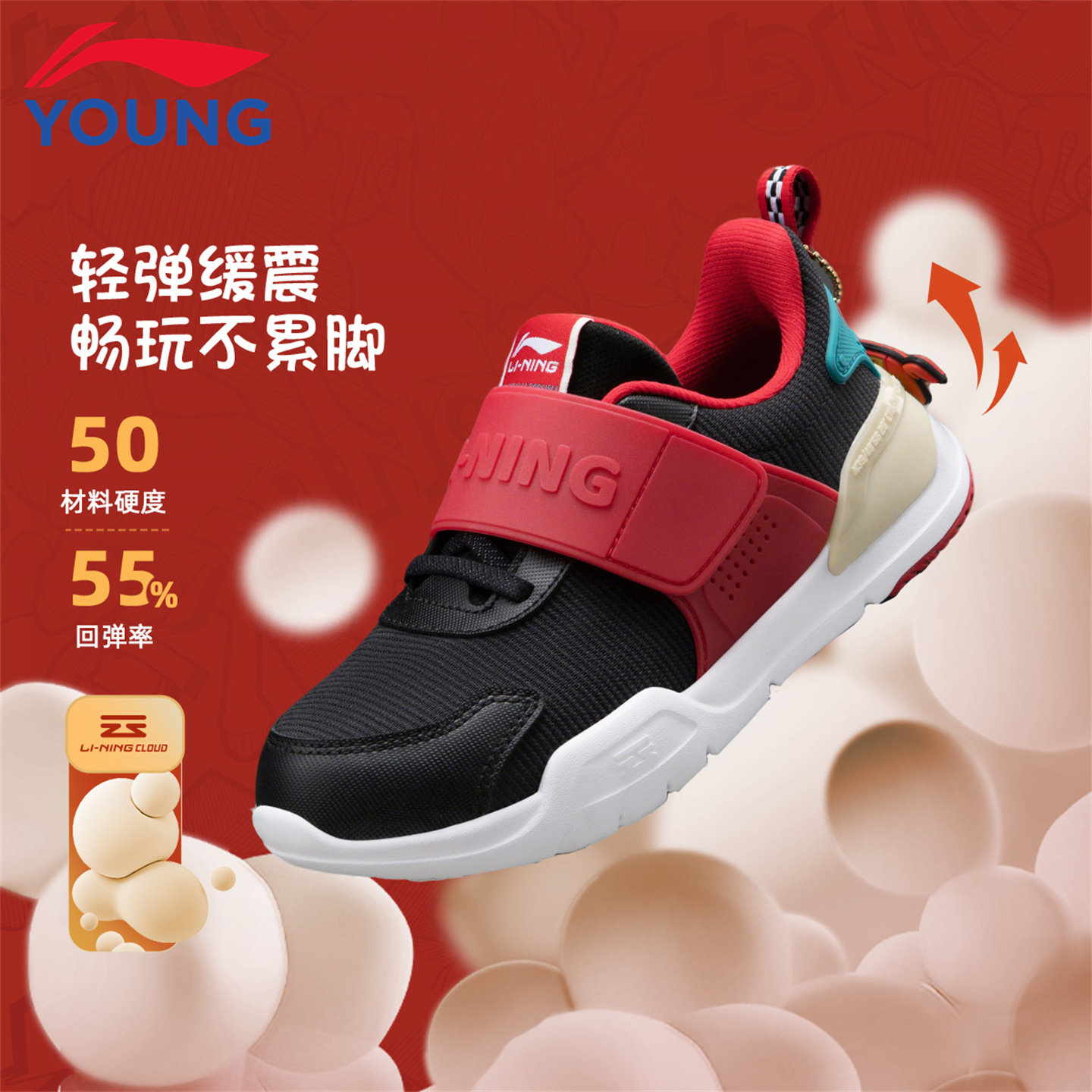 李宁童鞋小童一脚蹬运动鞋新年款2026红色秋冬款男童女宝宝跑步鞋