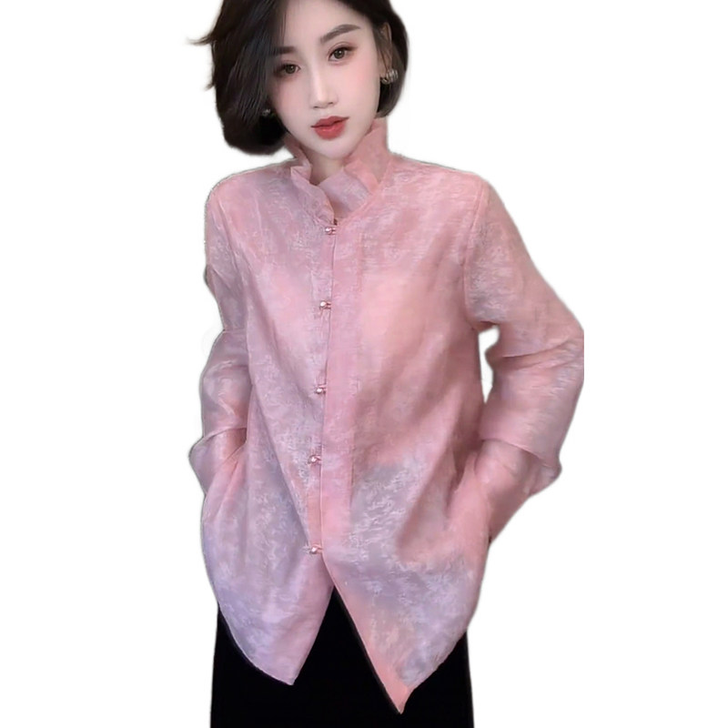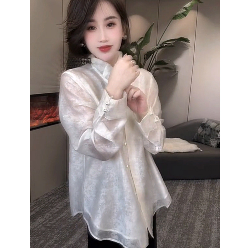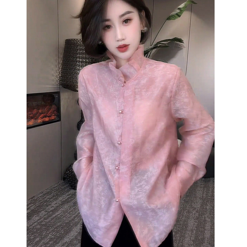 法式立领提花长袖衬衫女2026春新款花边领单排扣气质百搭显瘦上衣