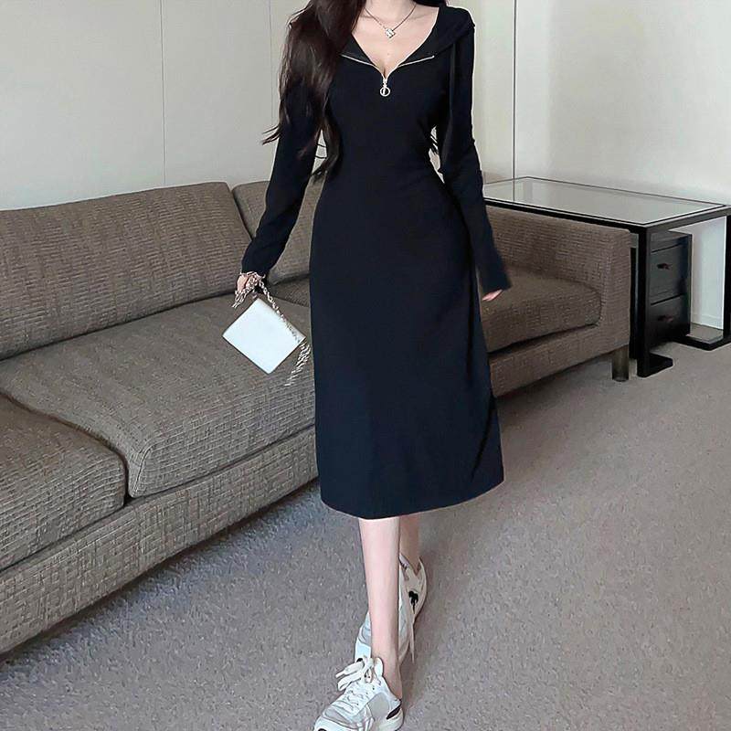 法式气质卫衣连衣裙子秋冬季2025新款女装长裙配大衣内搭打底长裙