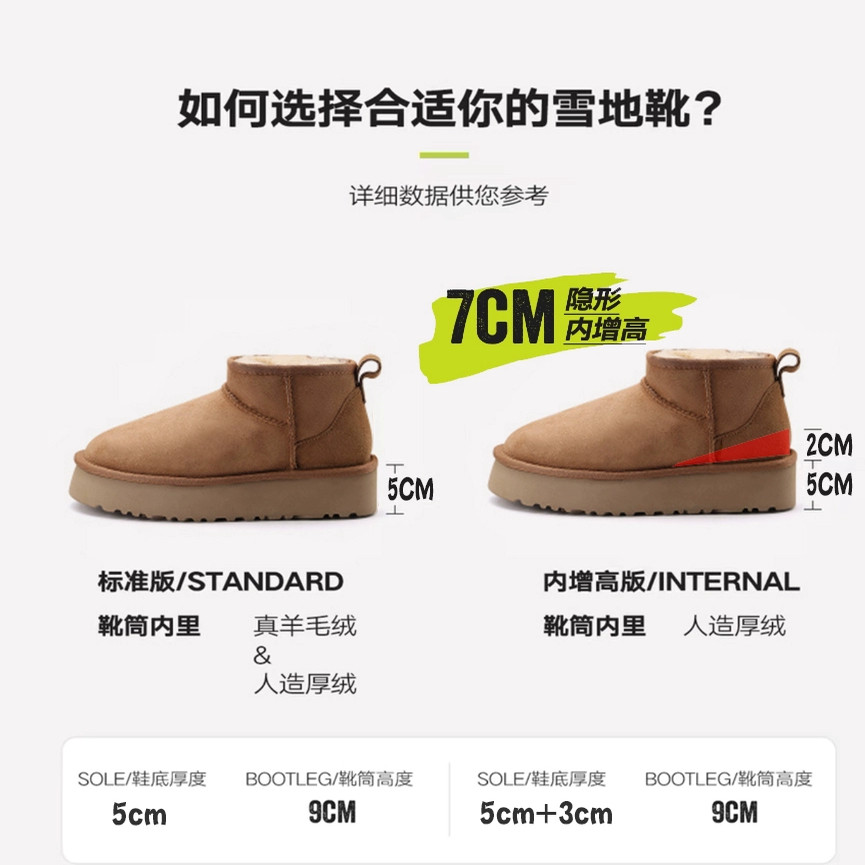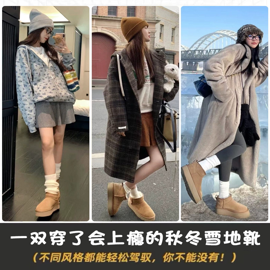 全牛皮版~内增高雪地靴女厚底秋冬加绒保暖东北棉鞋羊毛真皮短靴