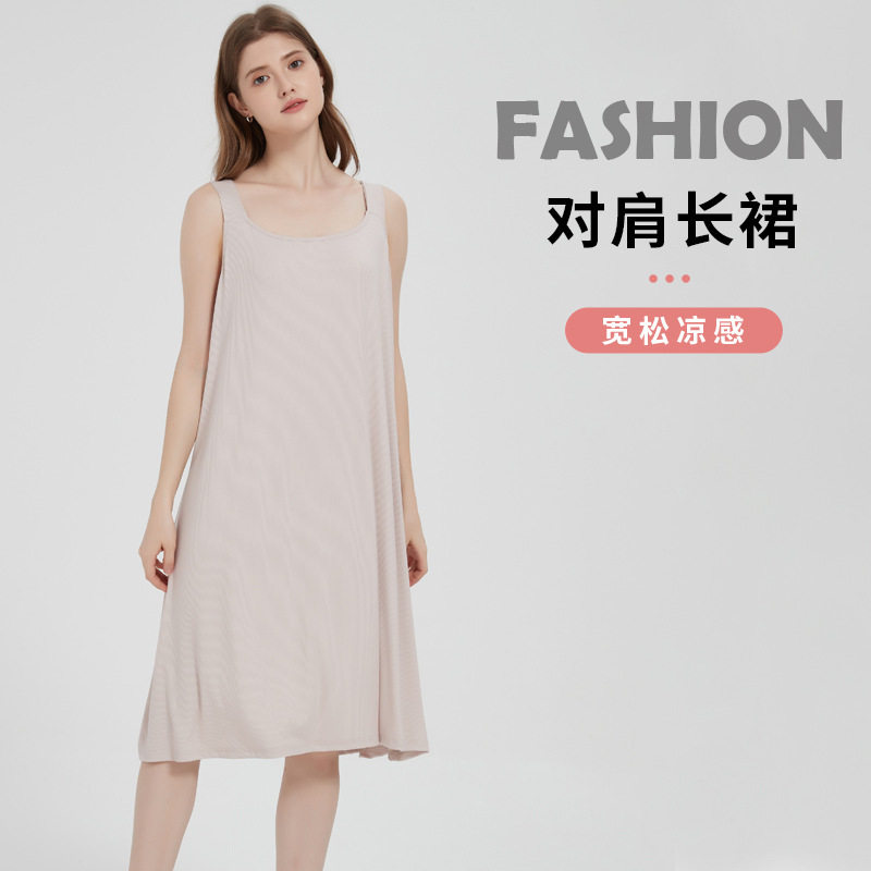 特大码竹纤维吊带连衣裙女宽松200斤300胖mm宽松中长款打底背心裙