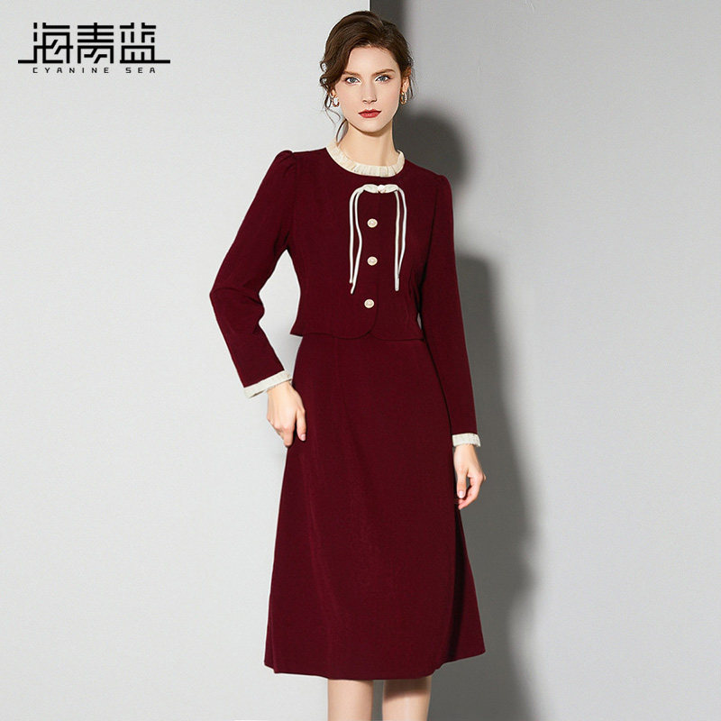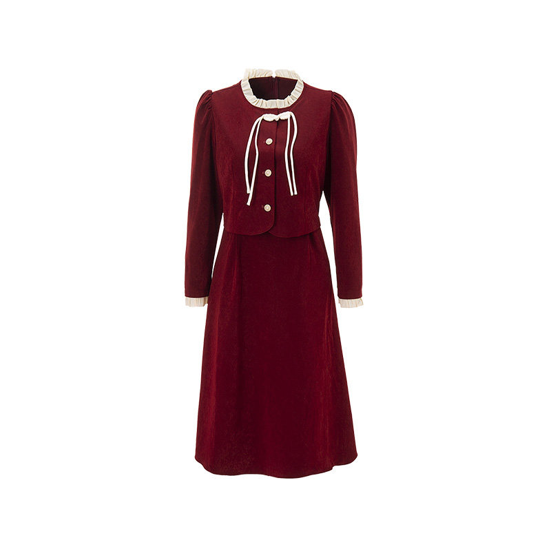 311线报网描述:红色新中式国风连衣裙 法式花边领气质裙子