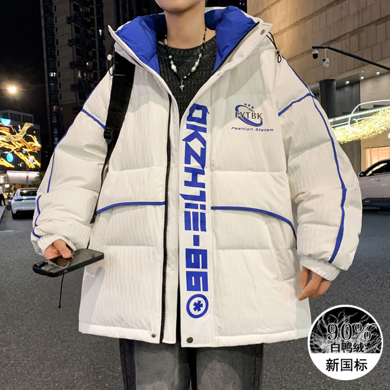 青少年羽绒服短款男孩初高中学生白鸭绒连帽加厚外套帅气大童冬装