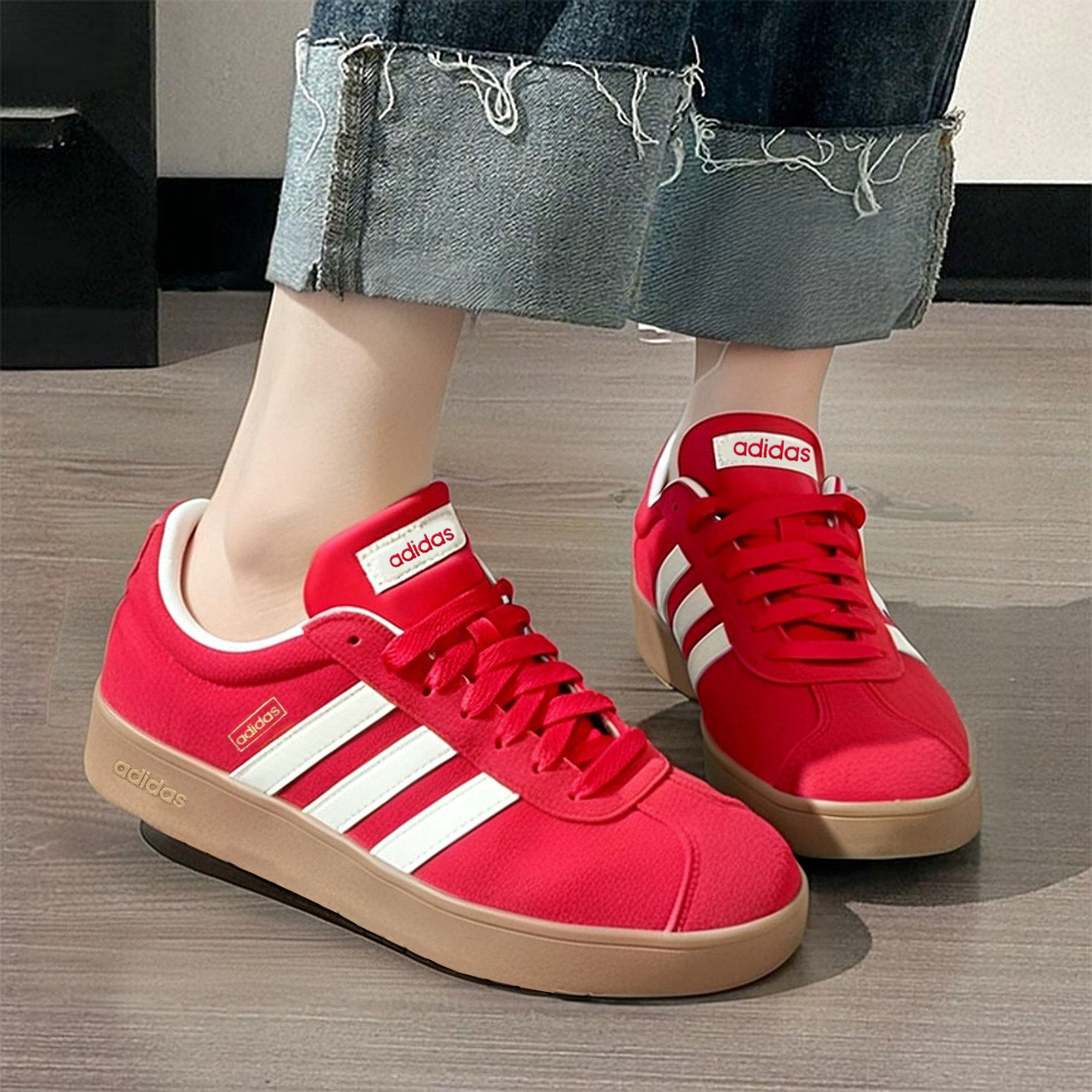 阿迪达斯红色板鞋女新款正品复古小白鞋女板鞋休闲Vl Court德训鞋