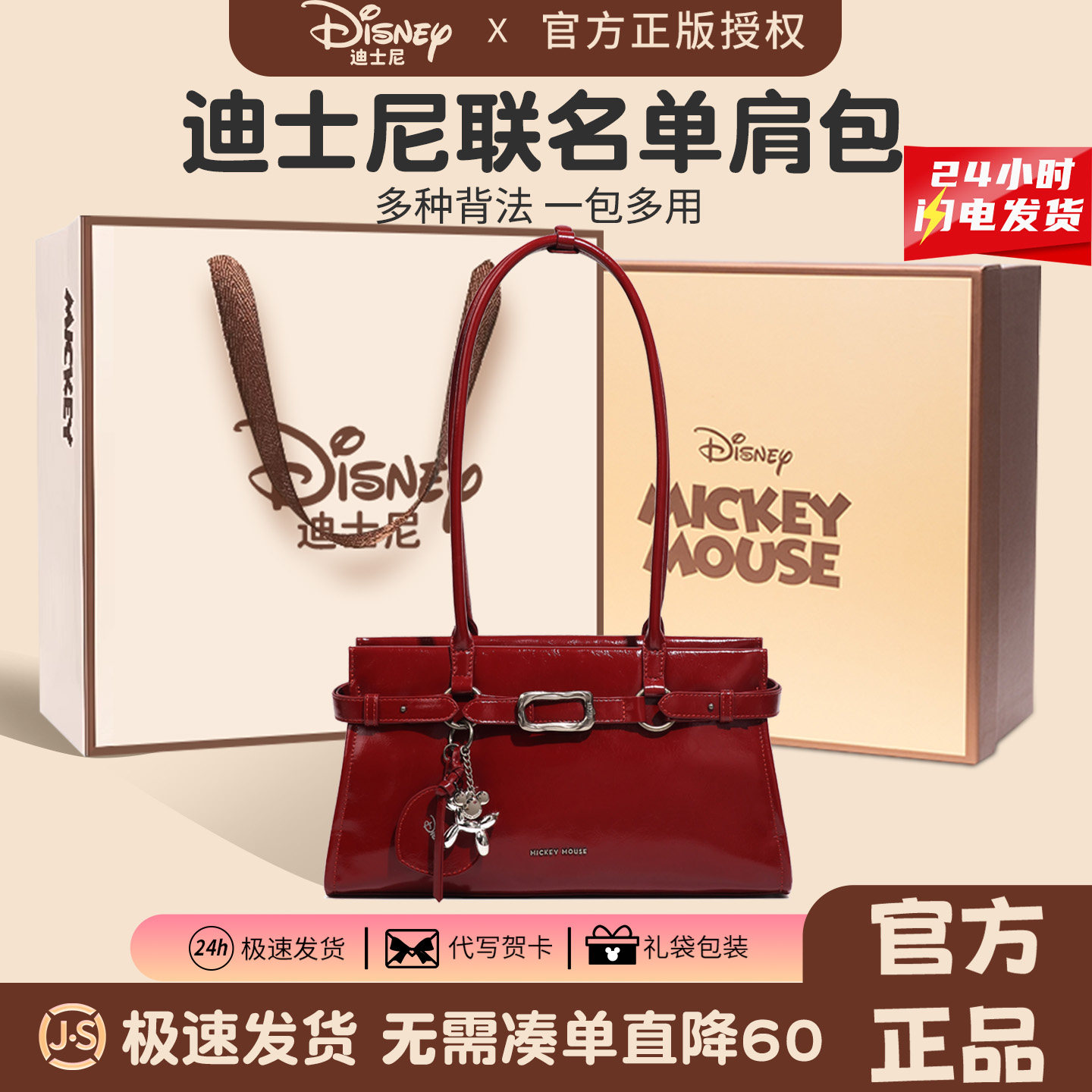 迪士尼包包女款轻奢小众高级感大容量简约百搭大气单肩包正品大牌