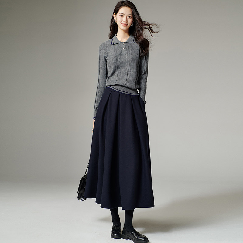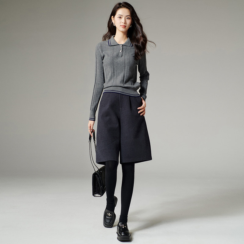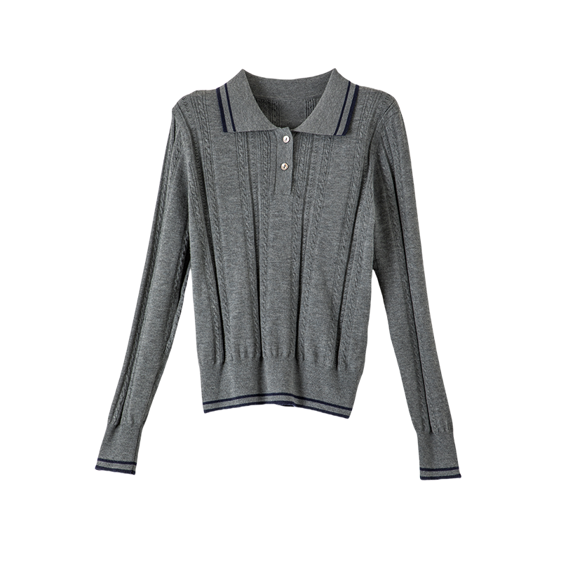 晚白2026年春季新款翻领修身上衣内搭休闲保暖毛衣毛针织衫女
