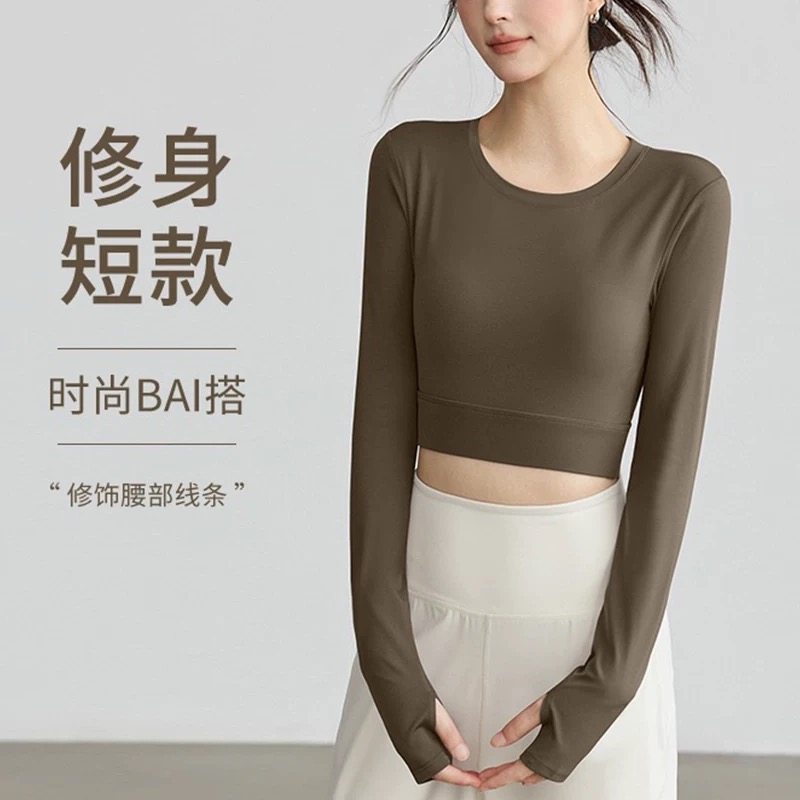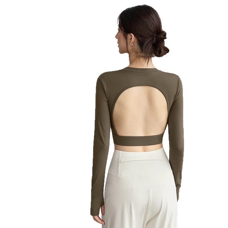 性感露背瑜伽服女带胸垫运动健身上衣高级感普拉提训练紧身长袖秋