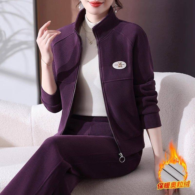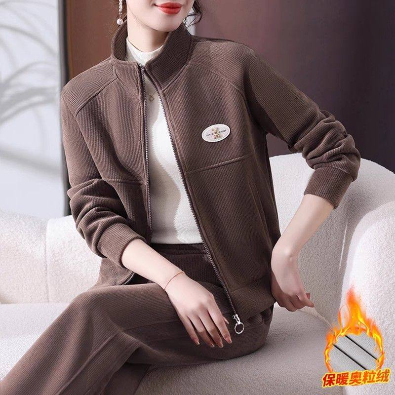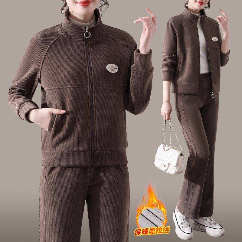 高端小个子中老年运动套装女秋冬季新款加绒加厚卫衣两件套一整套