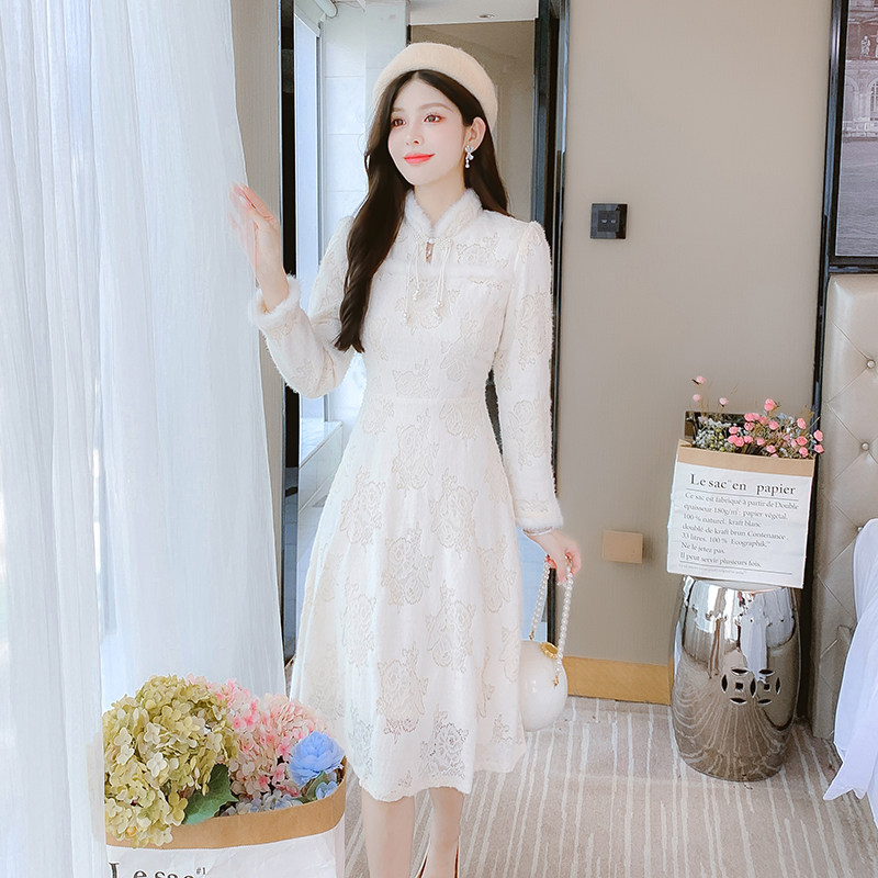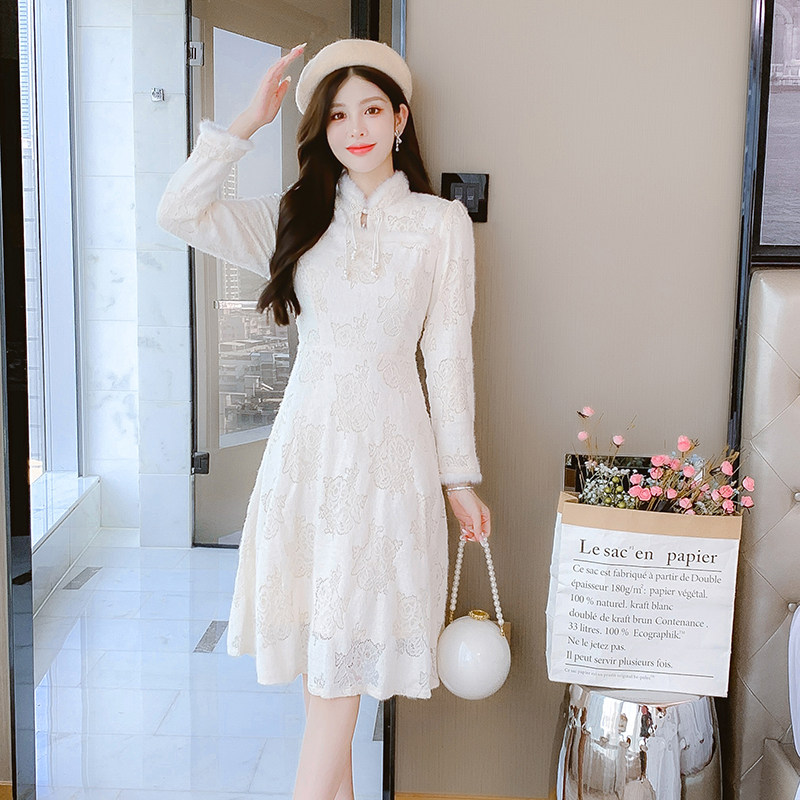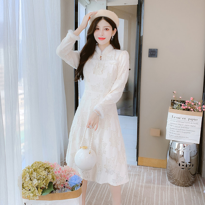 新中式旗袍裙加绒加厚打底连衣裙子女冬季新款时尚减龄复古小个子