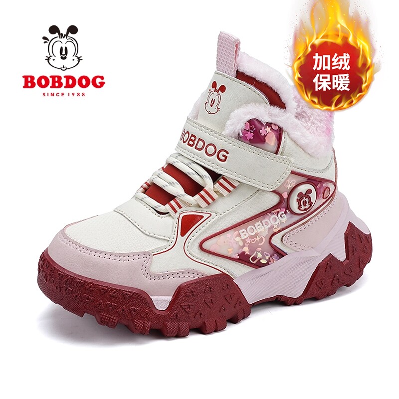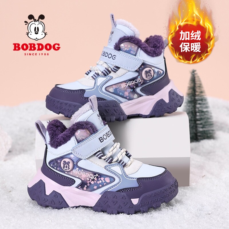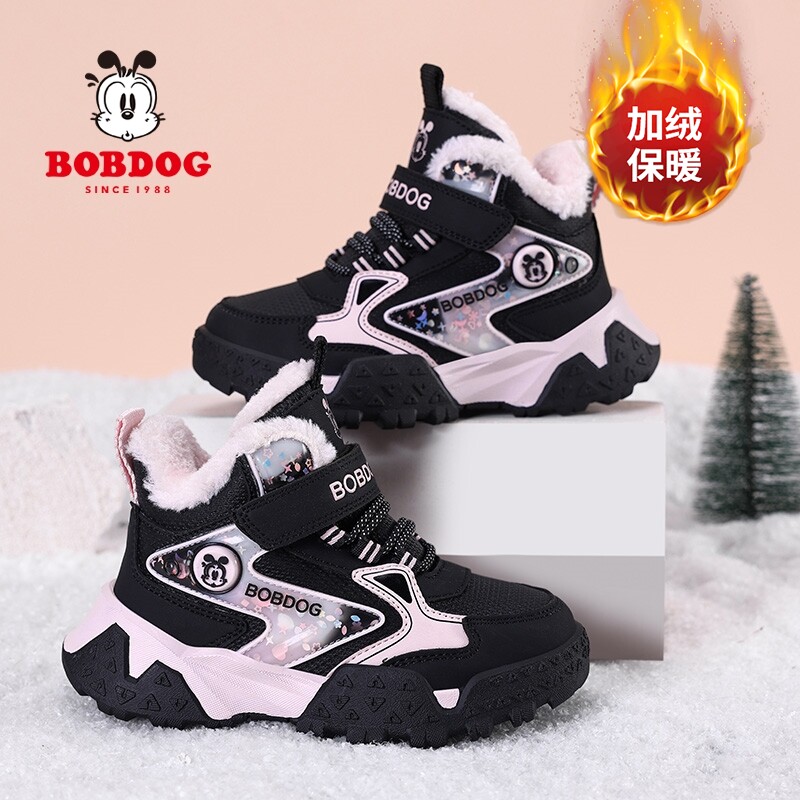 巴布豆童鞋女童加厚大棉鞋2025冬季新款加绒保暖女孩高帮运动鞋子